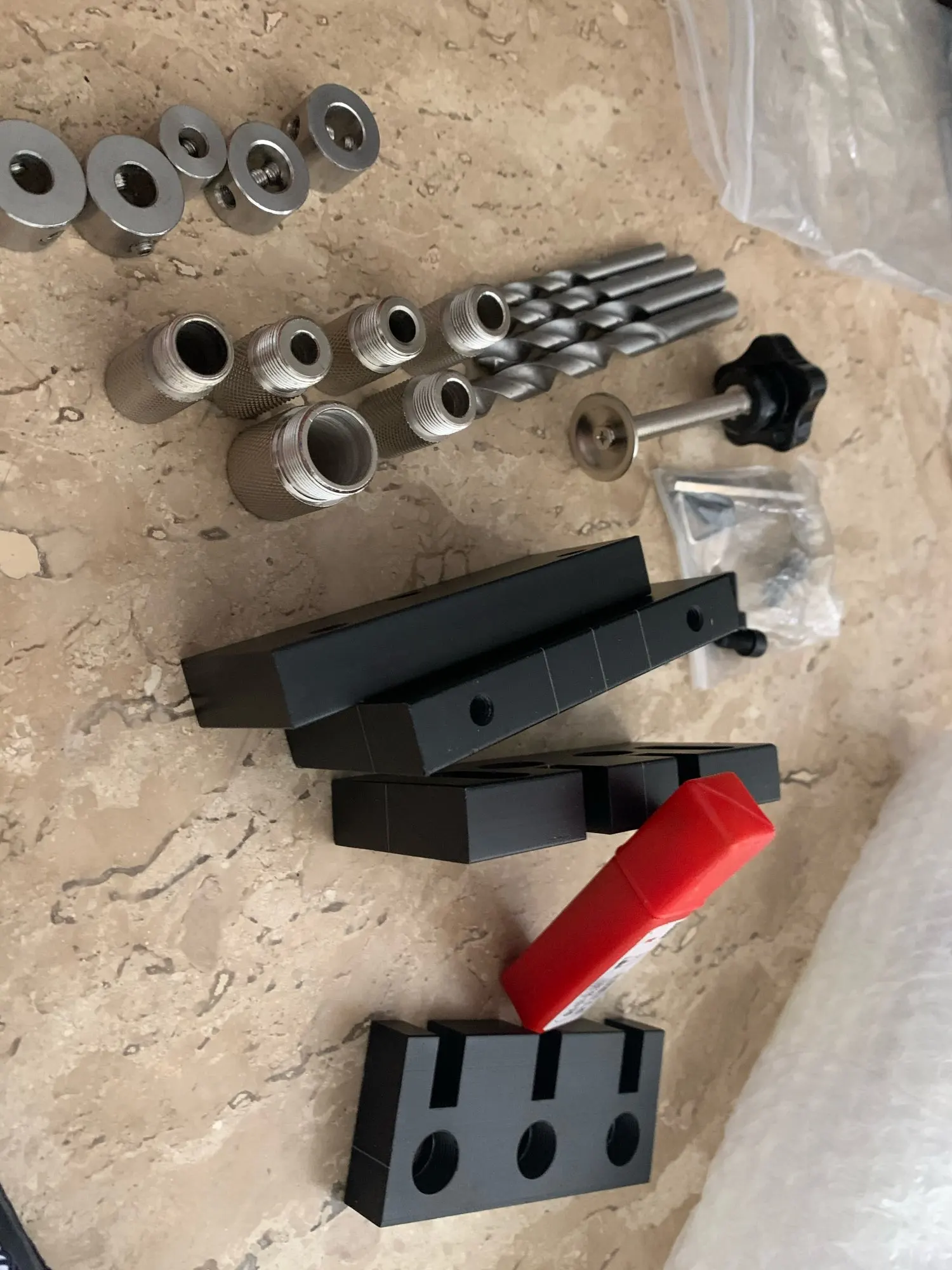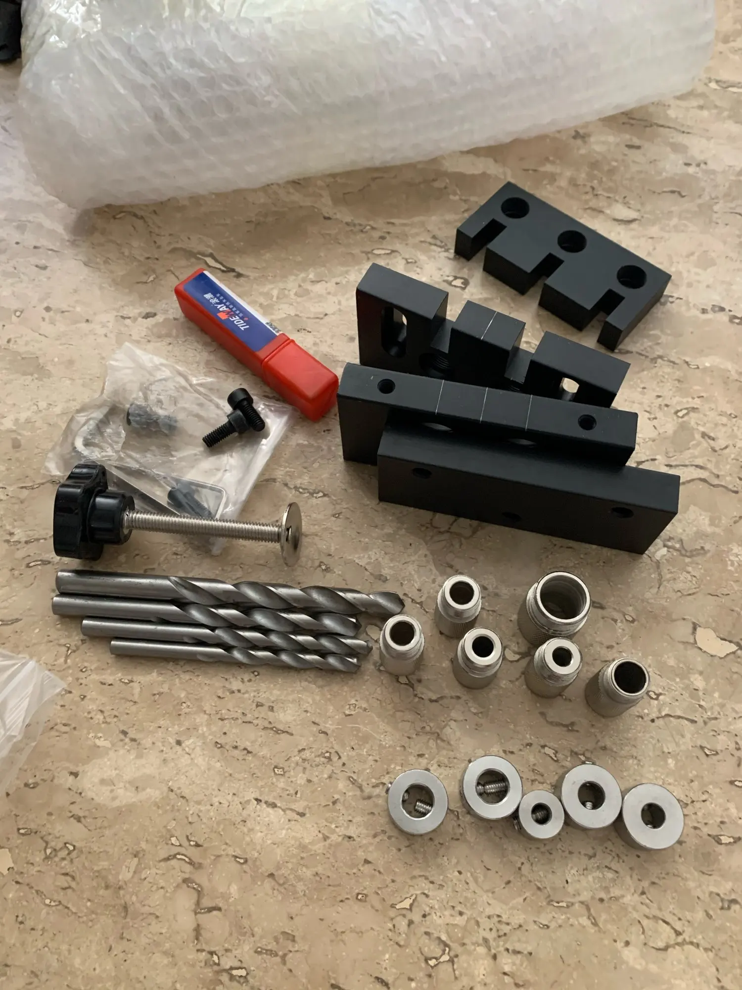 Весь комплект пришёл полностью. Сверло фостнера(15) во втулке(15) немного люфтит,не плотно подогнан.Для тех,кто не вкурсе-зажим зелёный заказывается и оплачивается отдельно!!!В отальном,качество хорошее
