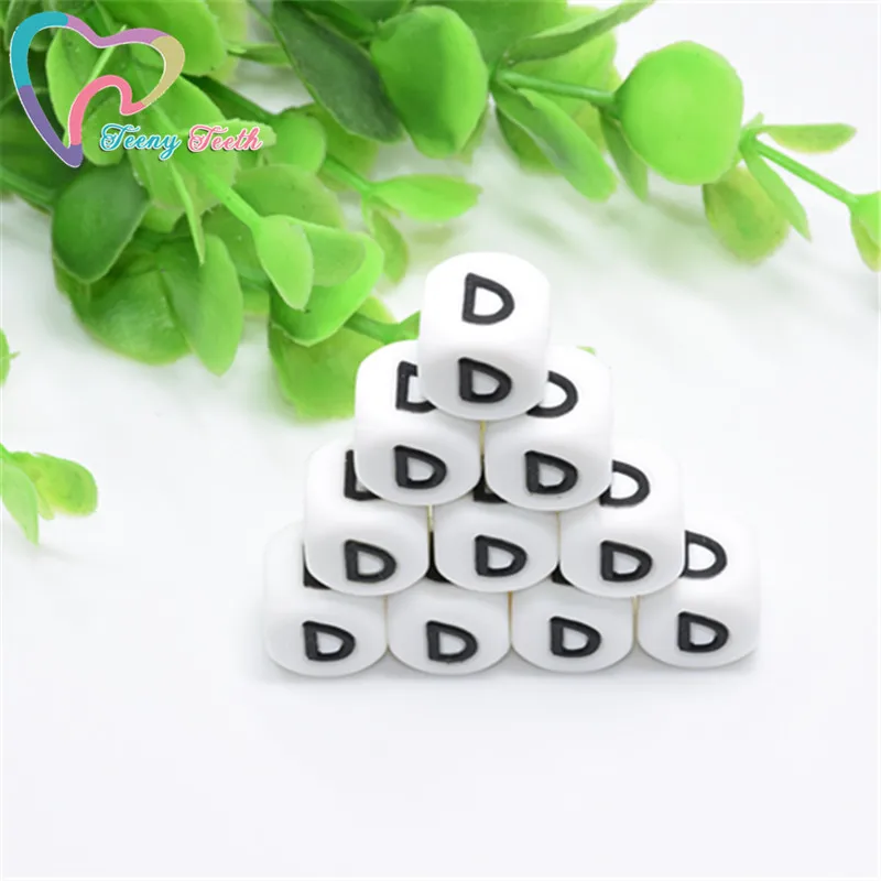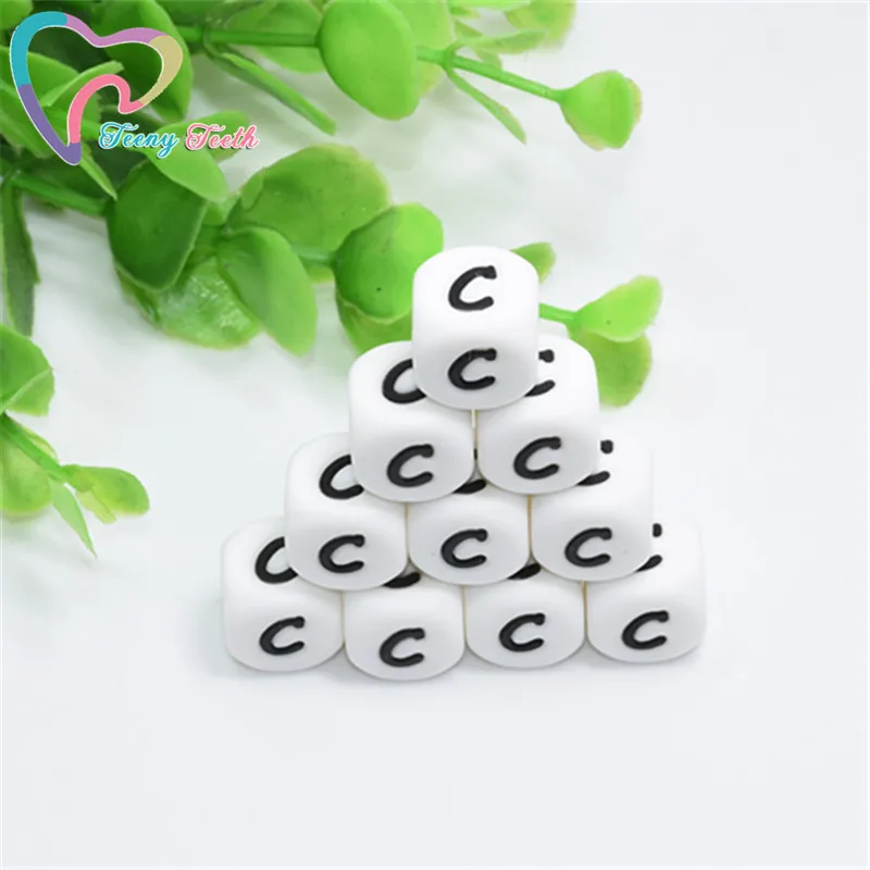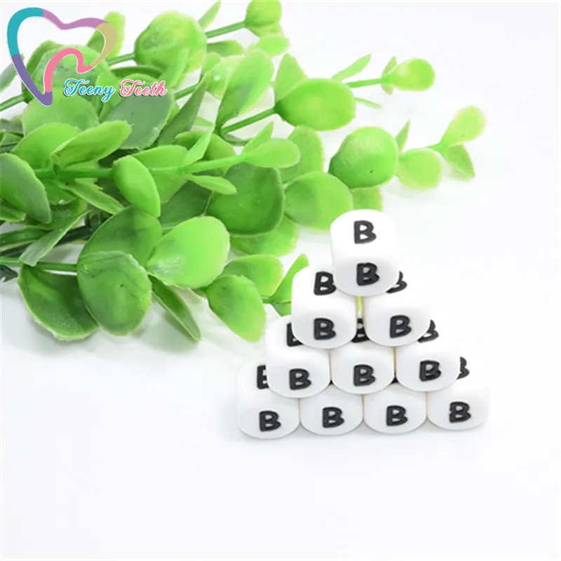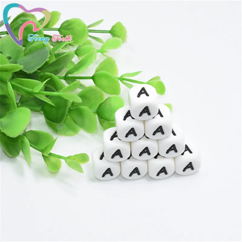 10 шт. 12 мм, силиконовая форма для кубиков, бусины для прорезывания зубов для малышей, Жевательные бусы с алфавитом, для индивидуального имени, DIY, Прорезывание Зубов, ожерелье