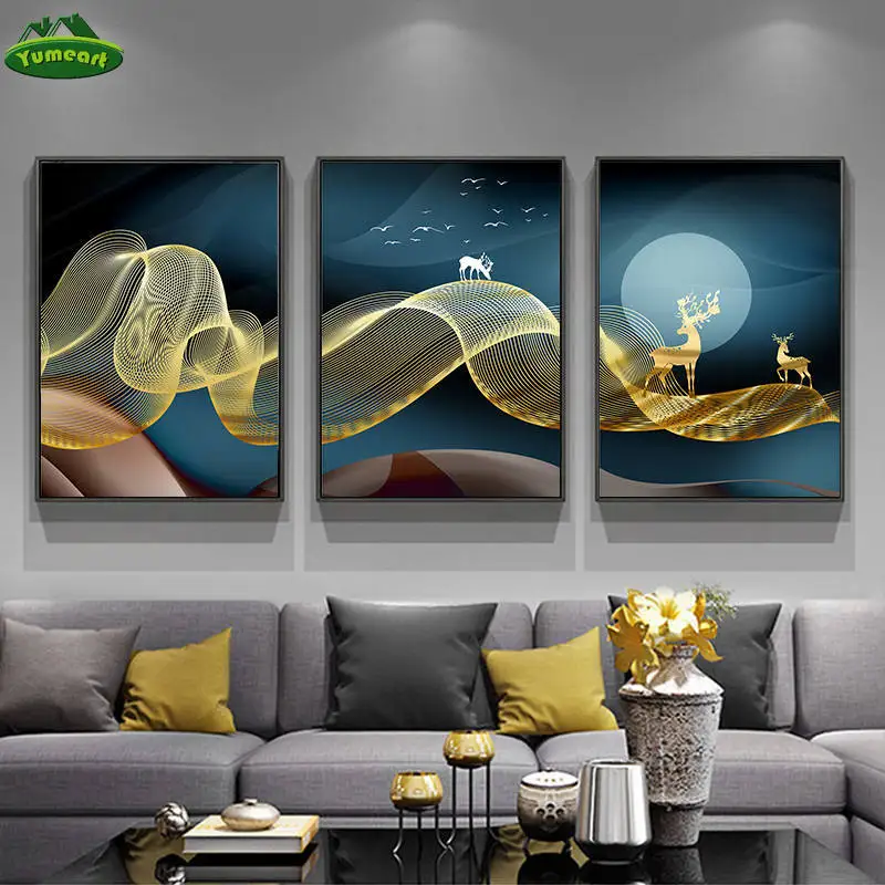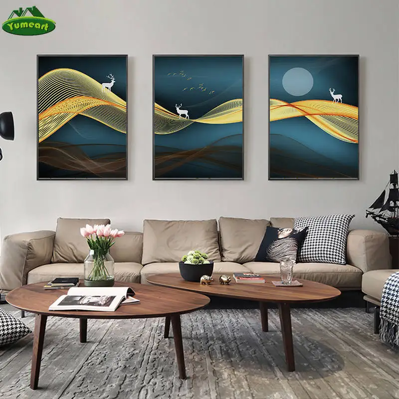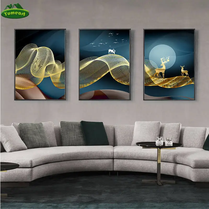 Абстрактная ткань олень Луна синий холст Художественная живопись золотые плакаты принты декоративные настенные картины для гостиной домашний декор
