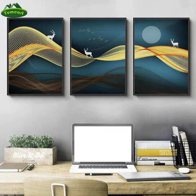 Yumeart скандинавский геометрический желтый цвет абстрактный олень ...