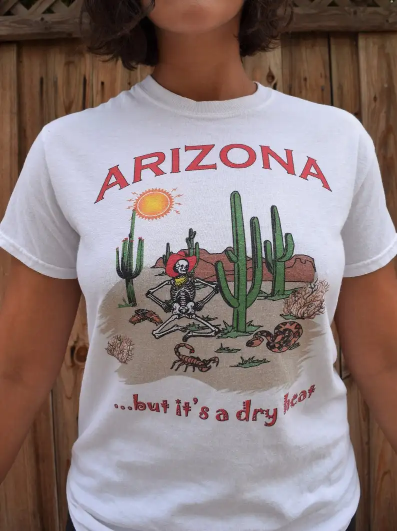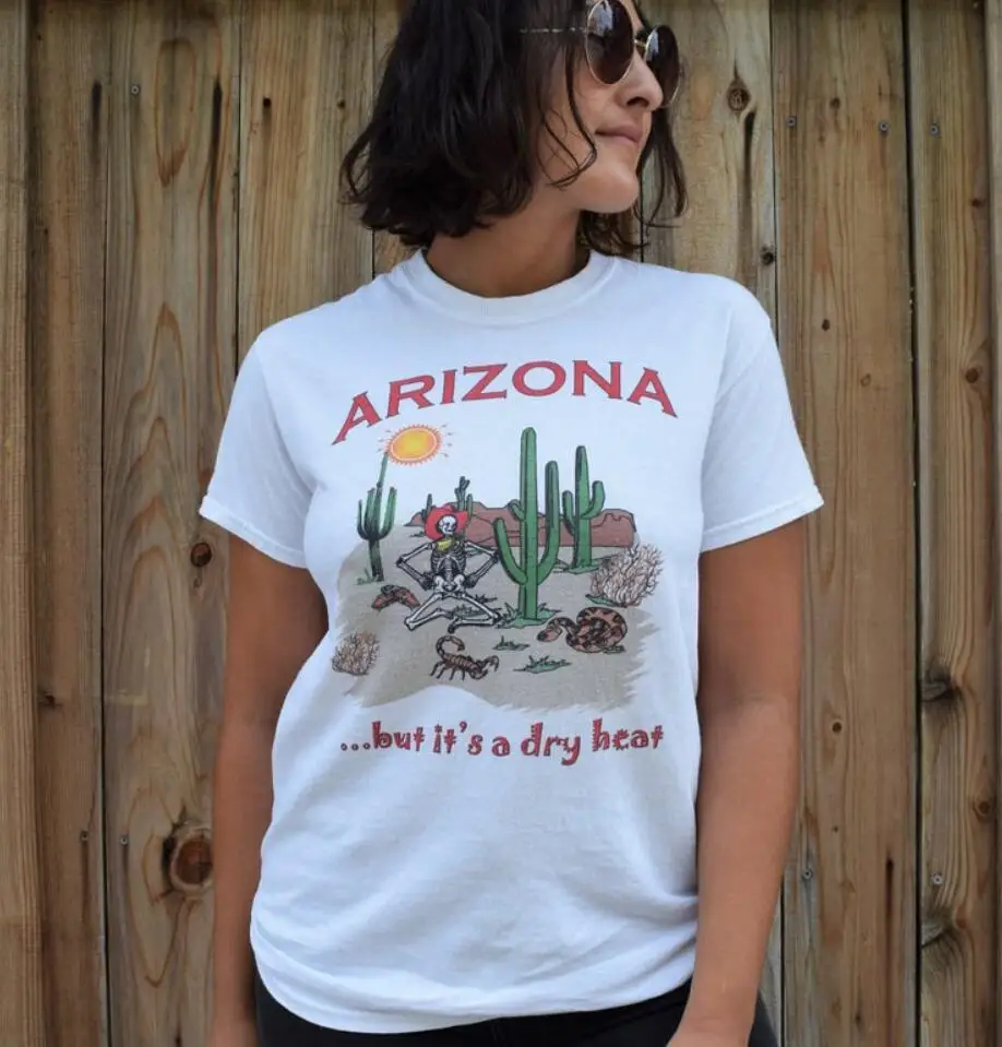 90s Винтажная футболка с изображением пустыни Аризоны кактуса, сувенир, Женская Футболка, большой размер, Kawaii, белый хлопковый топ, забавная графическая женская футболка Tumblr