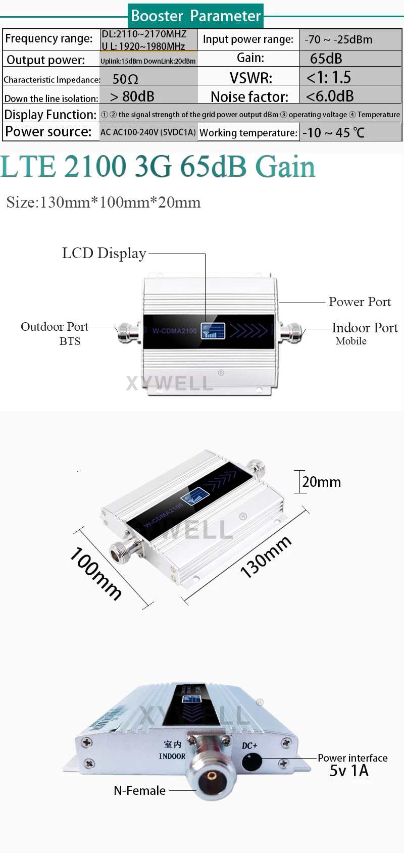 Signal Booster65dB (LTE Band 1) 2100 UMTS Mobile Signal Booster