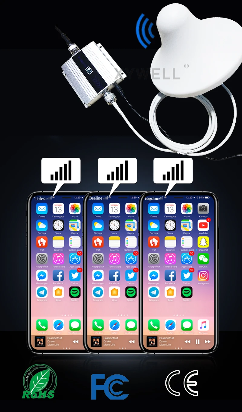 1. Пожалуйста, убедитесь, что вы можете получить как минимум 3 бар 2100 МГц (полоса 1) 3G сигнал на открытом воздухе перед покупкой, в противном случае этот продукт не может вам помочь. Для улучшения сигнала в помещении необходим хороший внешний сигнал.