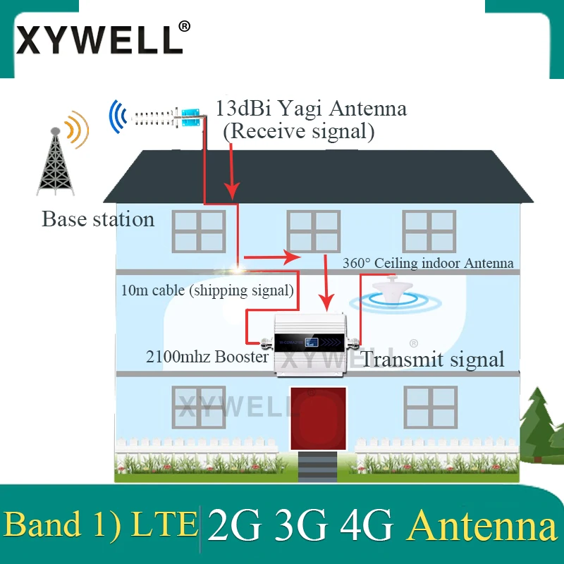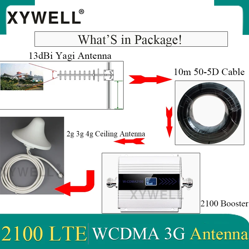 XYWELL набор усиления 65 дБ (LTE Band 1) 2100 UMTS Мобильный усилитель сигнала 3G (HSPA) WCDMA 2100MHz 3G UMTS сотовый ретранслятор усилитель