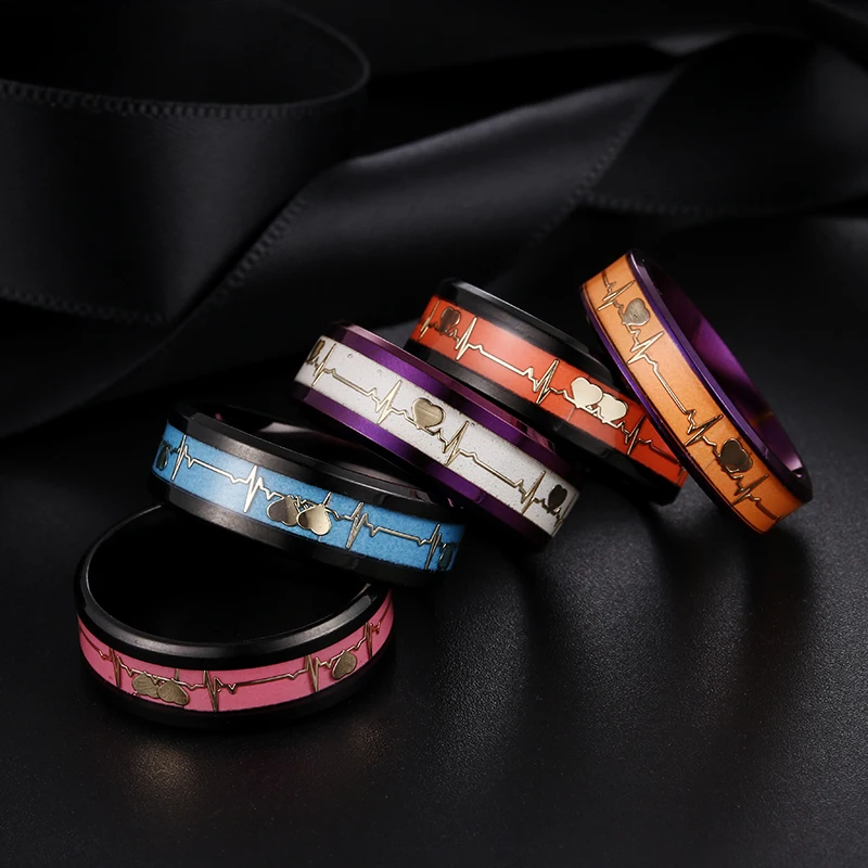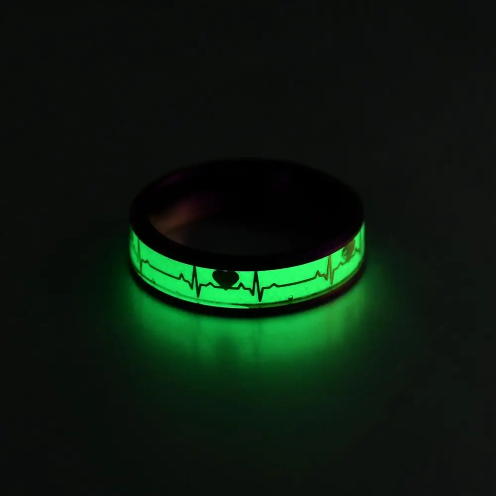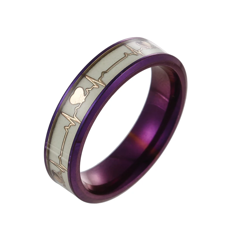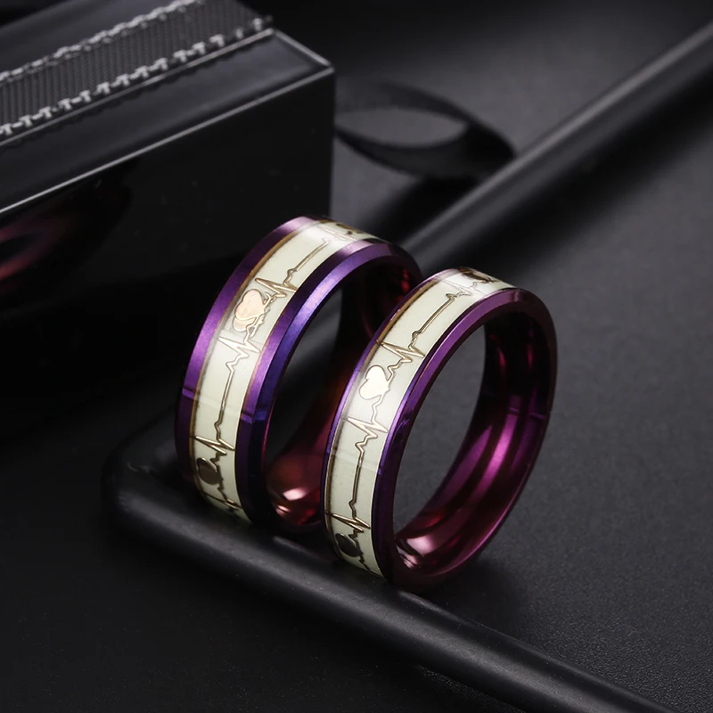 Светящееся кольцо для пары 8 мм6 мм светящееся кольцо для сердцебиения ЭКГ фиолетовое обручальное кольцо Сияющее Кольцо для любви в темноте