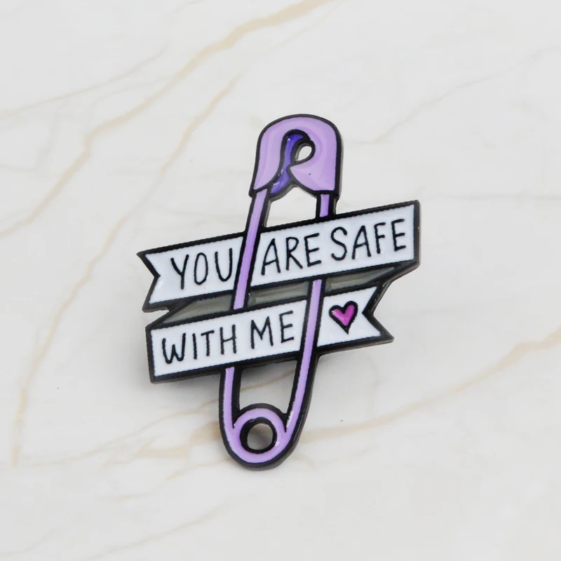 Стежка фиолетовый Скрепка эмали штырь "ты в безопасности со мной" з...