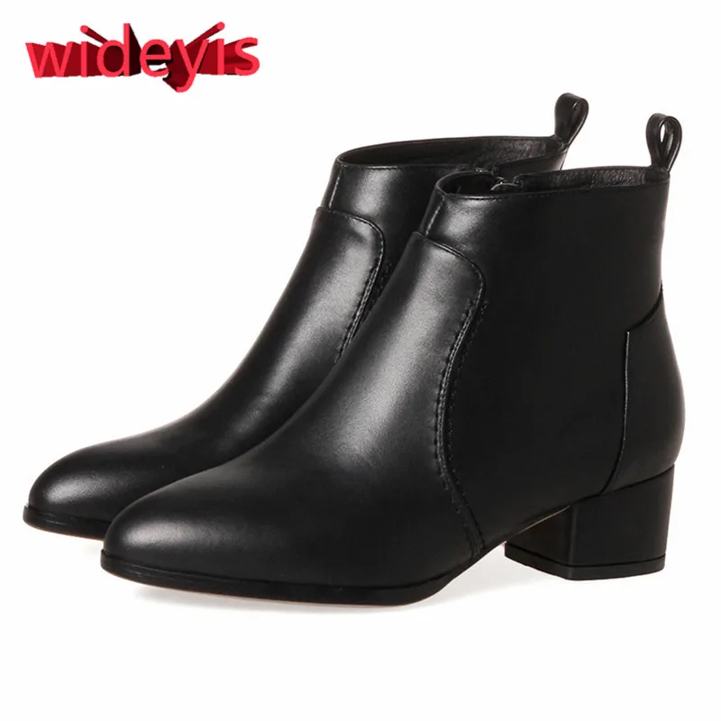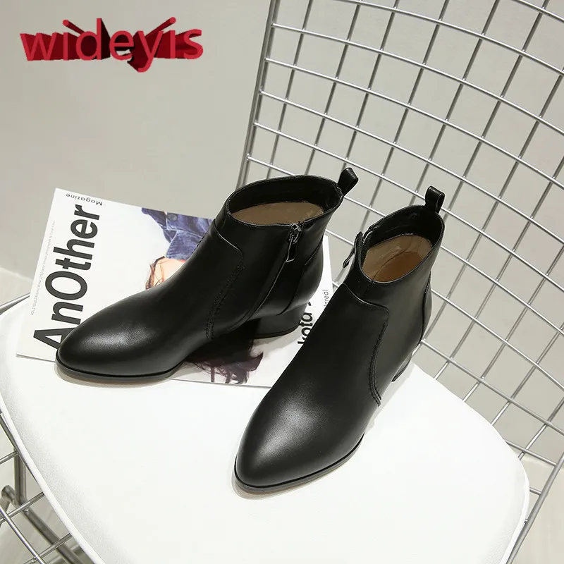 ботинки женские WIDEYIS 2019 осень новые полные кожаные женские сапоги Nappa кожаные ботинки остроконечные сплошного цвета рабочие банкетные ботинки удобные мягкие ботинки женские