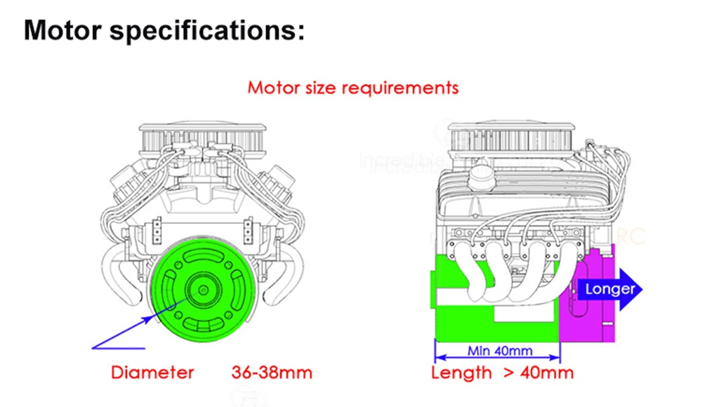 Примечание: для серии TRX4 (Тактический Блок Defender Bronco) необходимо провести некоторую резку, двигатель в комплект не входит