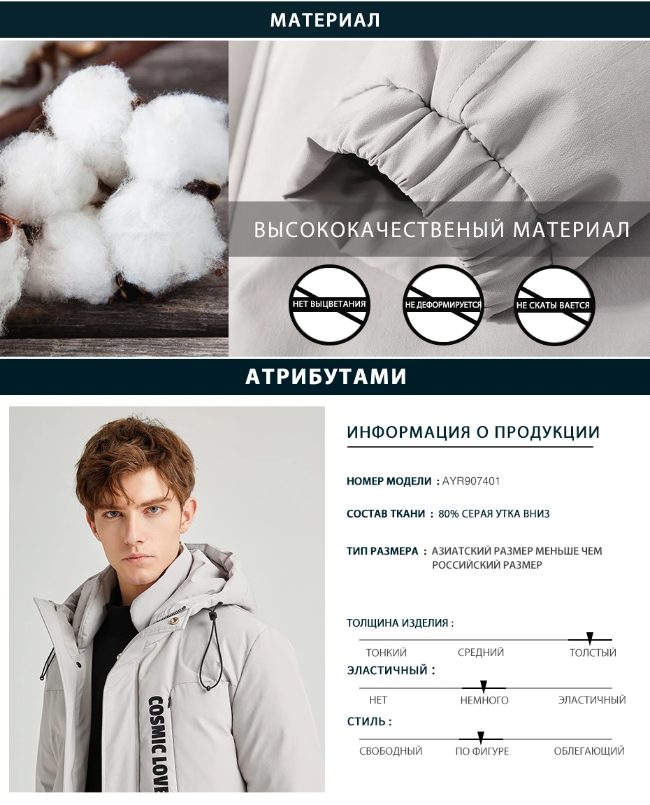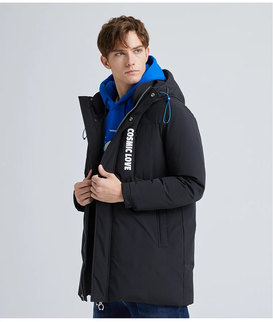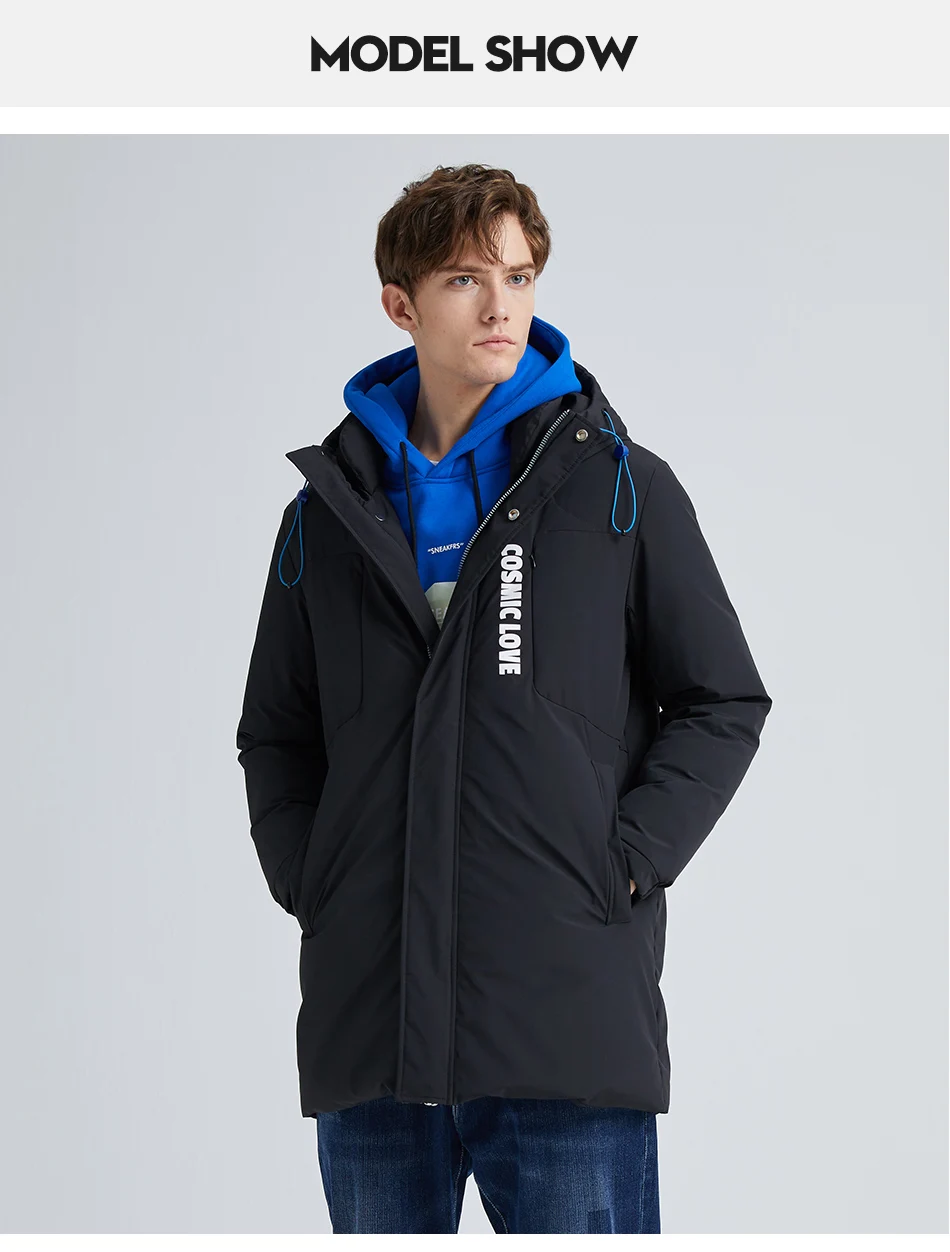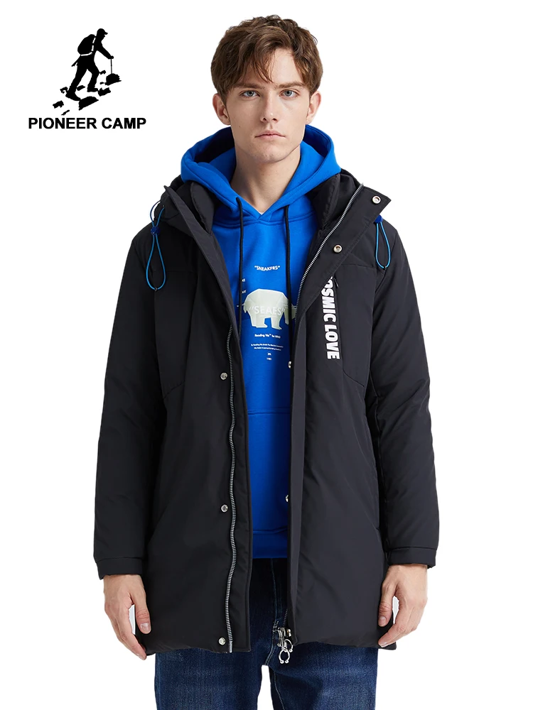 Мужской длинный пуховик Pioneer Camp, модный толстый Повседневный пуховик черного цвета и цвета хаки с капюшоном, 2020, AYR907401