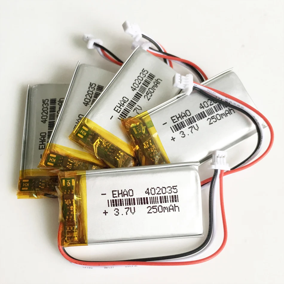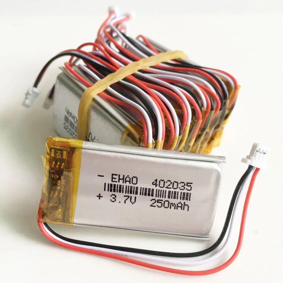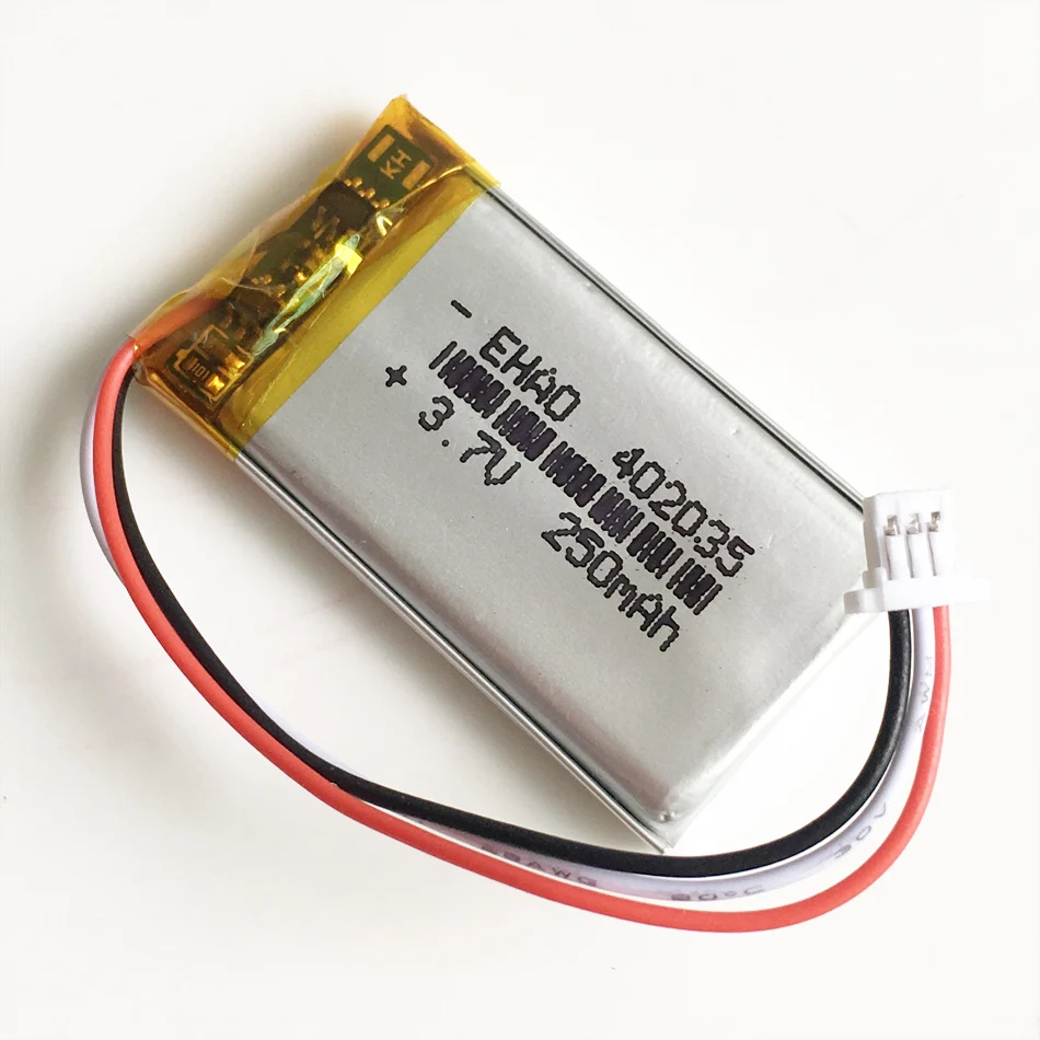 3,7 v 250mAh 402035 литиевая полимерная аккумуляторная батареяС 3-контактным разъемом JST 1,0 мм.