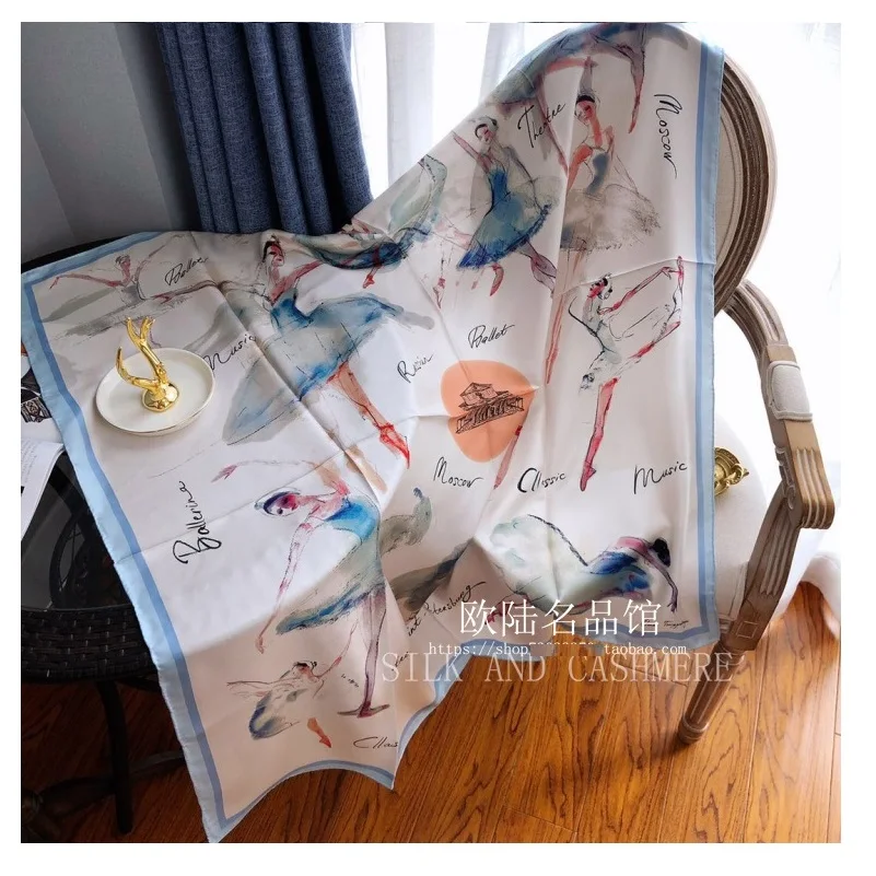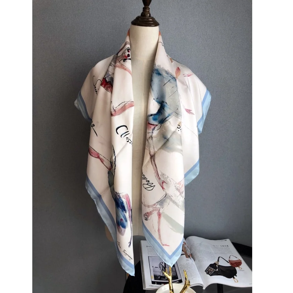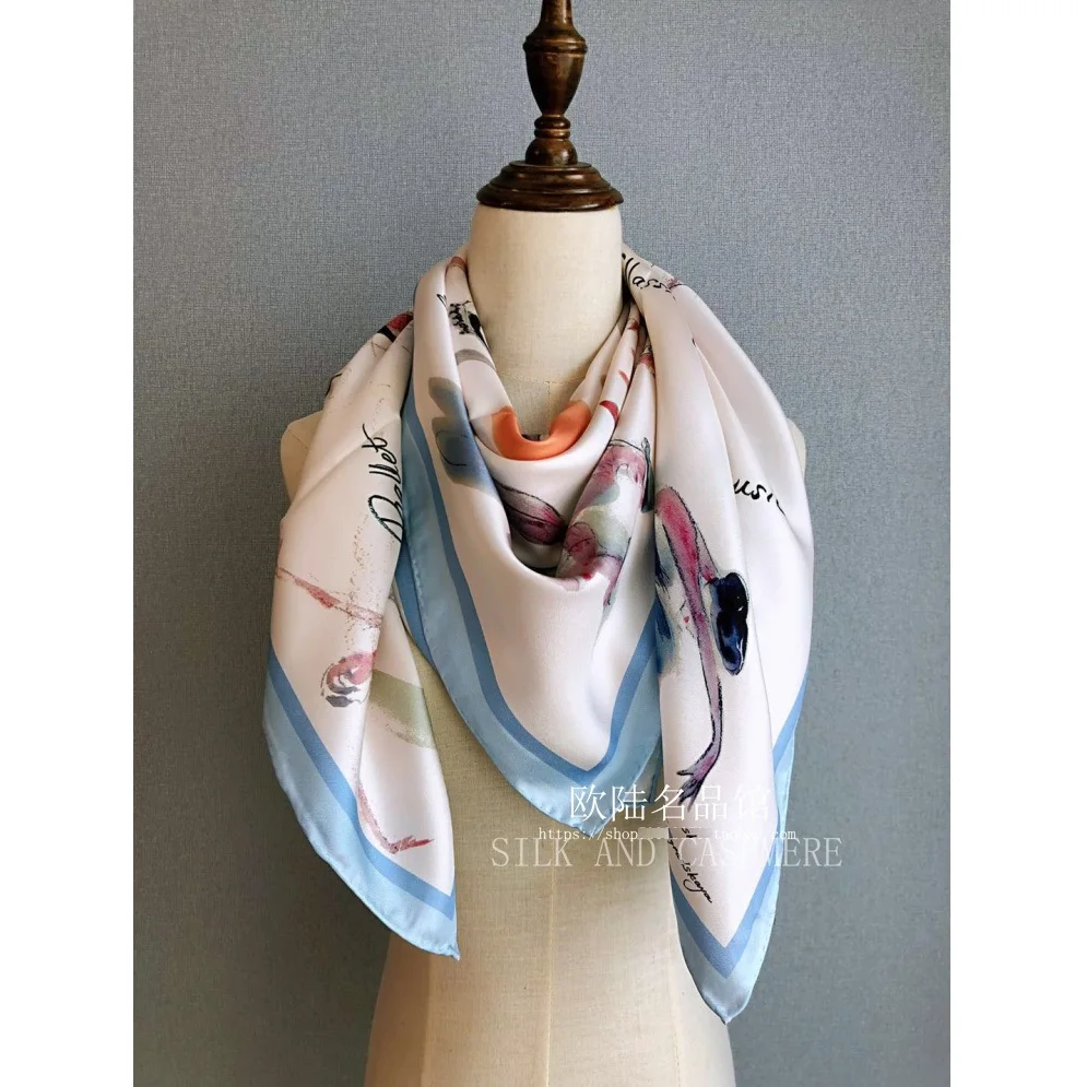 Женский шарф из 100% шелка, с принтом, 110x110 см