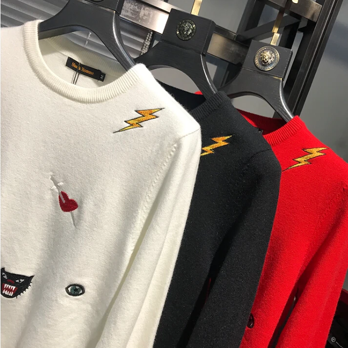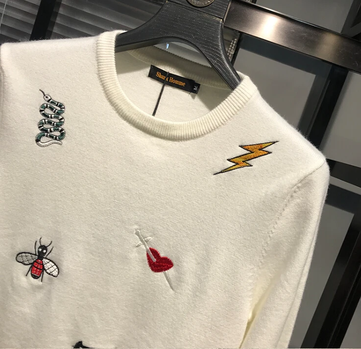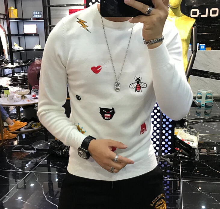 Мужской свитер в полоску, с круглым вырезом и длинным рукавом