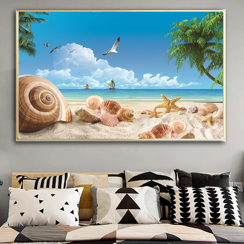 Постер с природой, морской природный пейзаж, раковина, дерево, пляж, настенные картины для украшения гостиной, домашний декор
