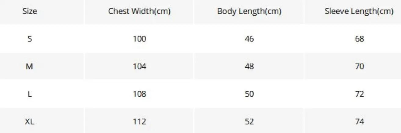 Примечание: 1. Пожалуйста, строго следуйте таблице размеров, выберите размер. Не выбирайте напрямую в соответствии с вашими привычками. 2. Размер может отличаться на 2-3 см из-за ручного измерения. Пожалуйста, обратите внимание при измерении.