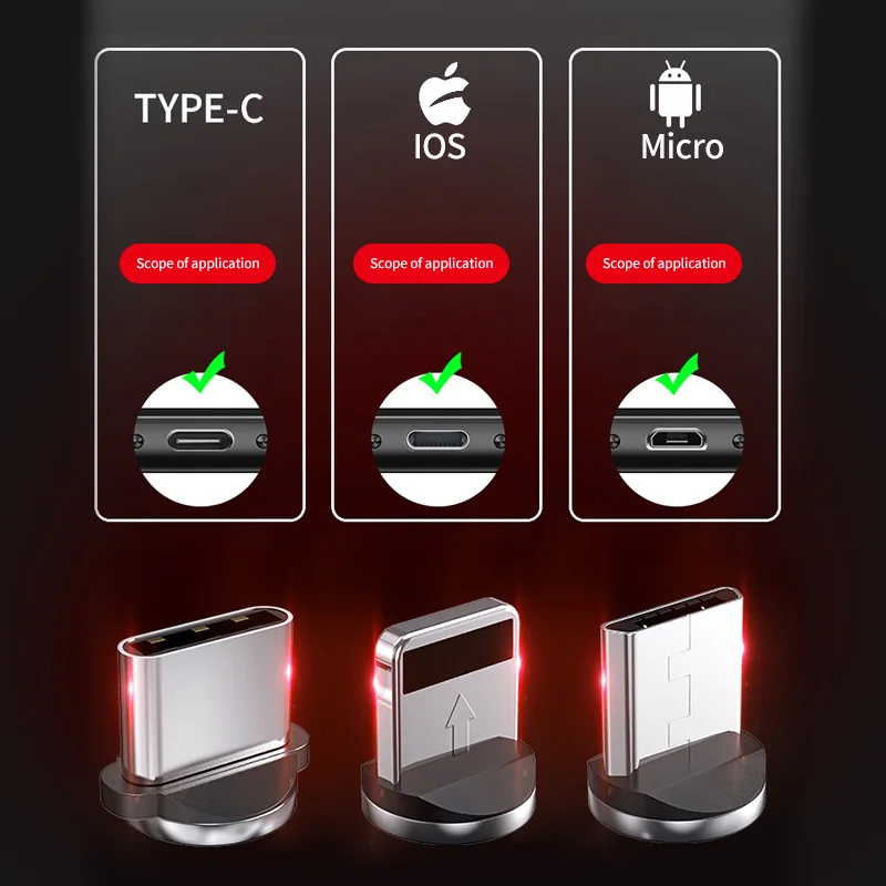 ①Magnetic Быстрый зарядный кабель ② Кабель Micro USB/usb type-C 2,4 A ③ Для Mciro/type C/IOS