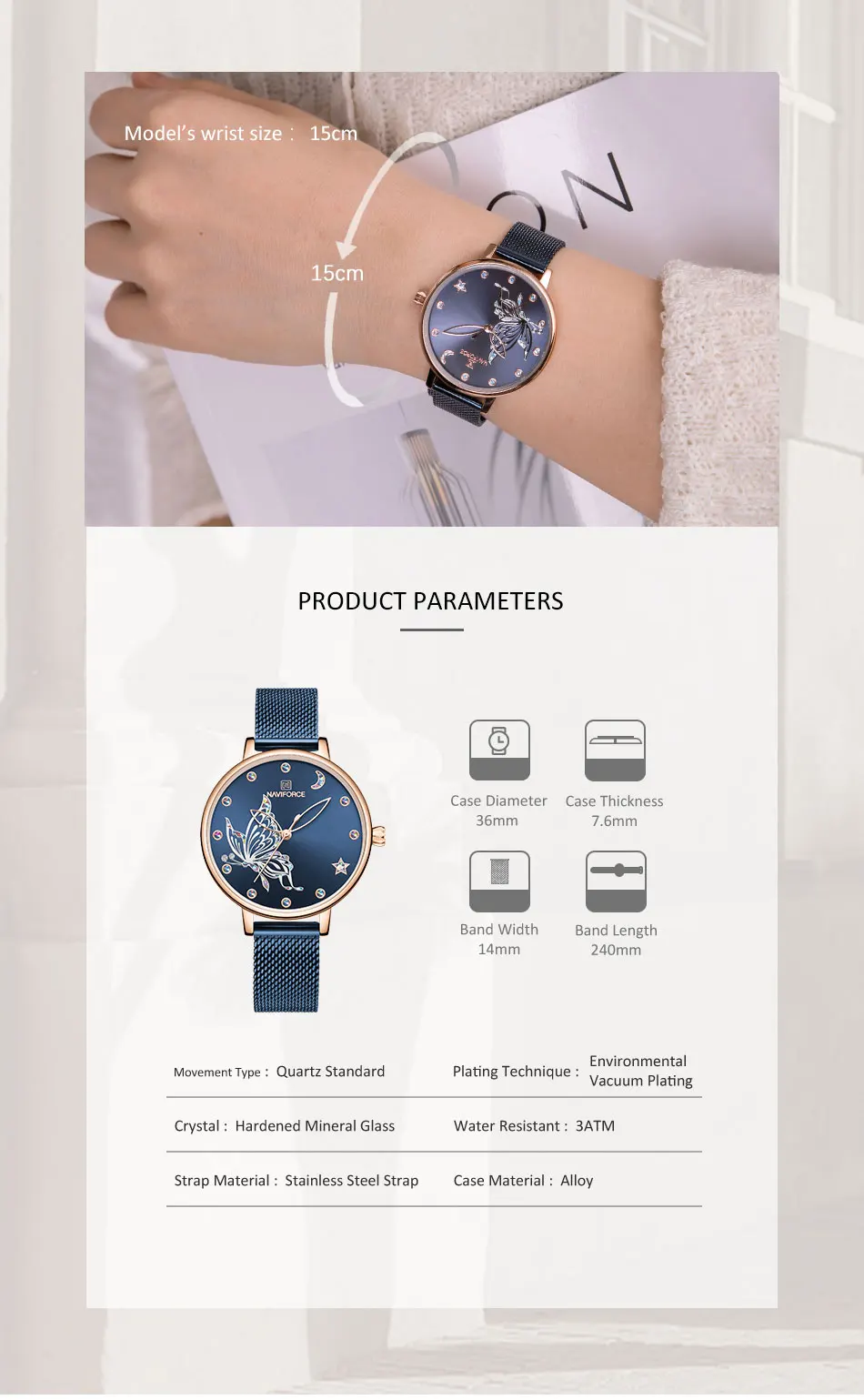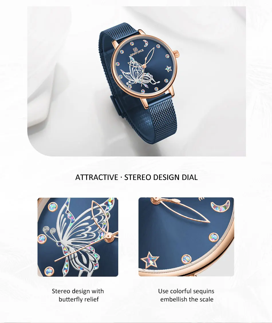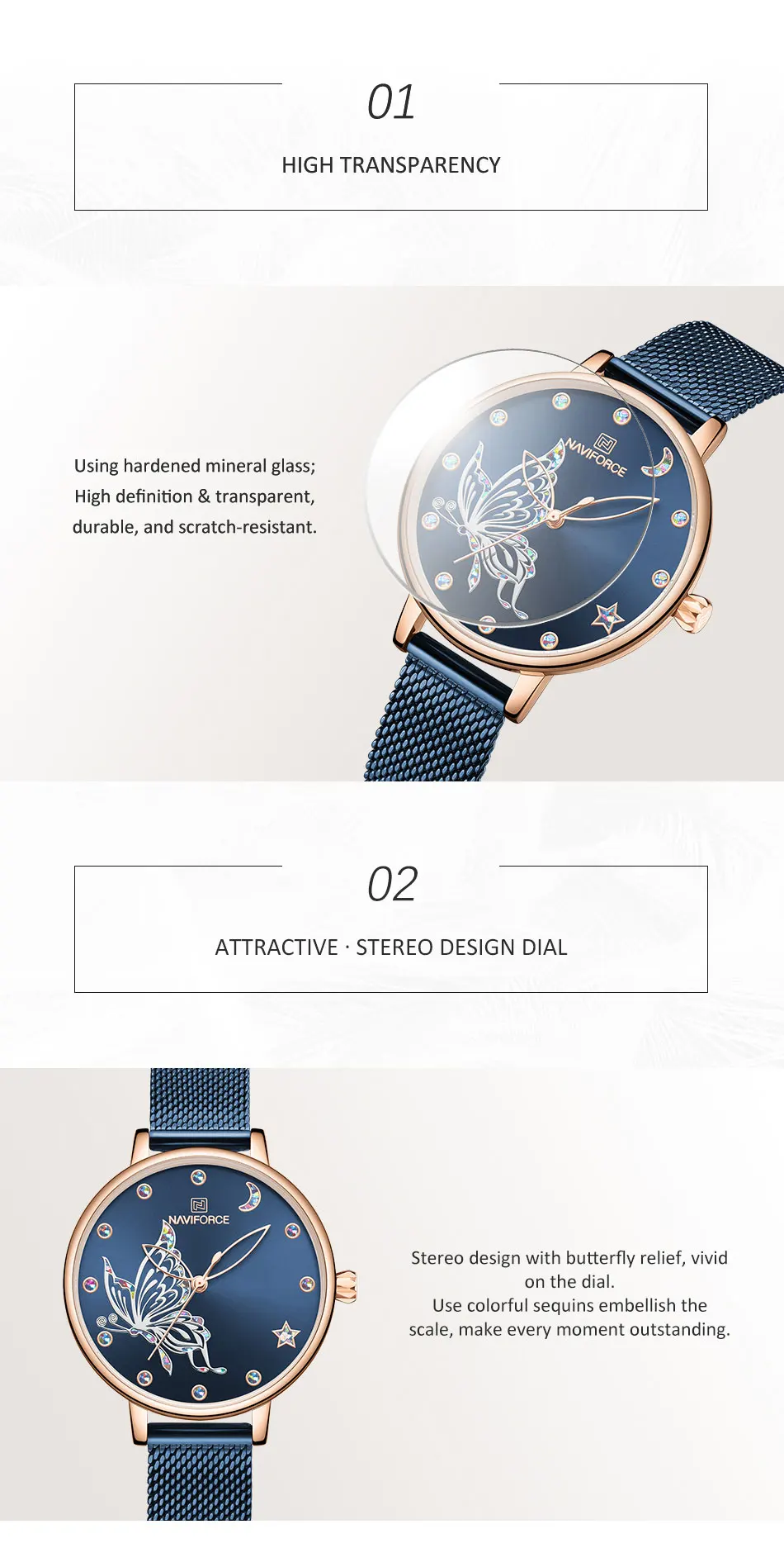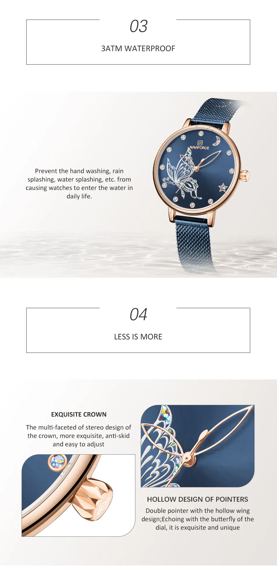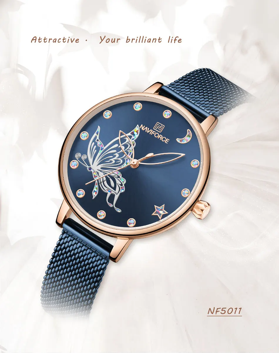 Часы NAVIFORCE женские кварцевые, водонепроницаемые, 3 АТМ, из нержавеющей стали, повседневные, 2020