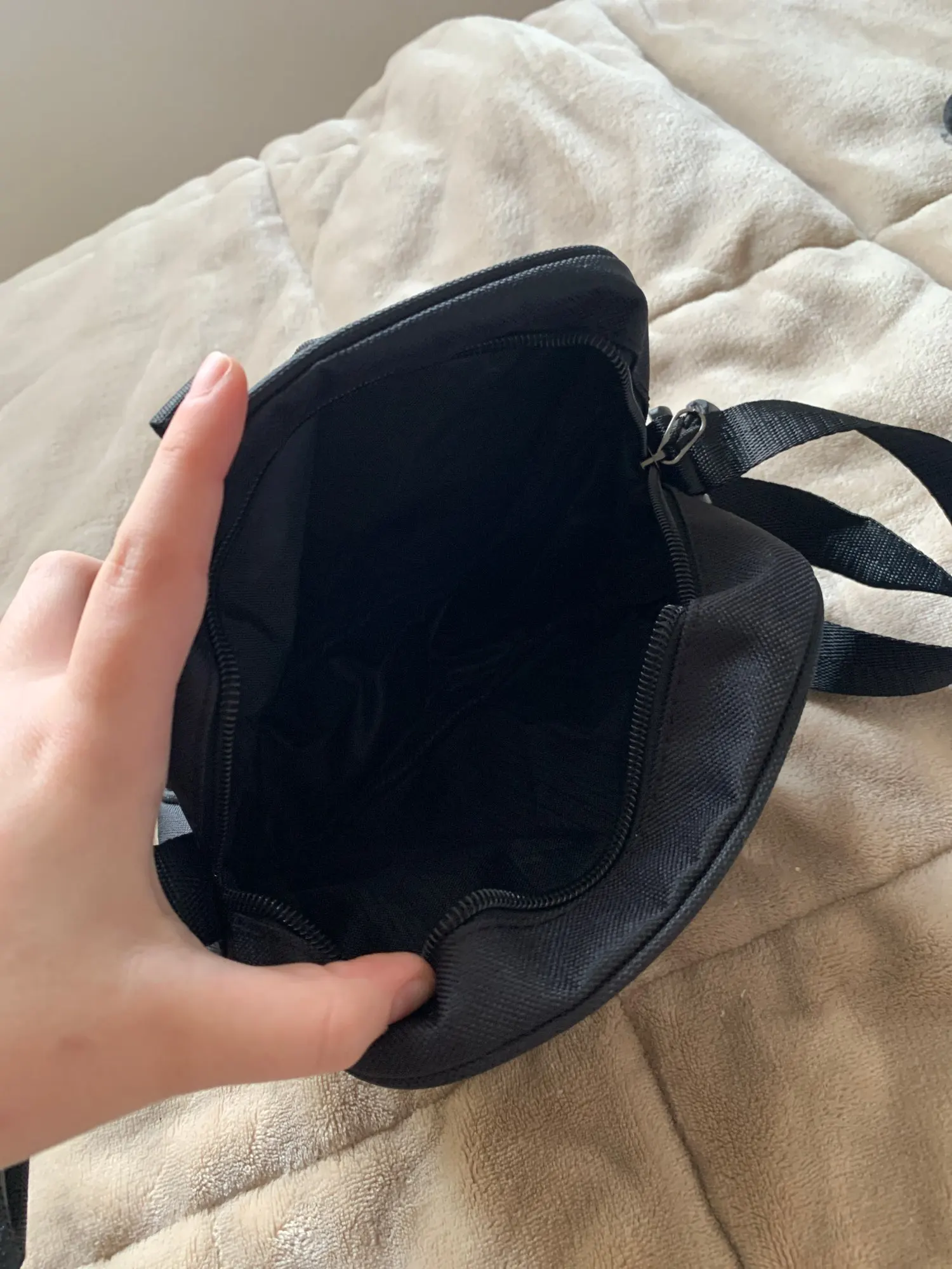 Ремешок тонкий, пришит к сумке. Сумка легкая, вместительная, нашивку легко можно удалить маникюрными ножницами, следов не останется. Длина ремешка регулируется. В длину 19 см, ширина 16 см. Имеется запах, но думаю на улице выветрится. Внутри защитный поделал В целом качественная, никаких нареканий. Пришла посылка в постамат пятёрочки за 14 дней до спб