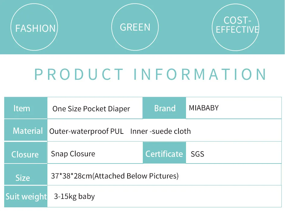 Карманные подгузники Miababy, детские моющиеся многоразовые Экологически чистые подгузники, подгузники с карманами, Современные тканевые подгузники