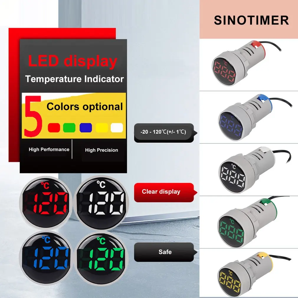 SINOTIMER ST16C 22 мм круглый светодиодный термометр с цифровым дисплеем измеритель температуры тестер Индикатор сигнальный светильник-20-120 °
