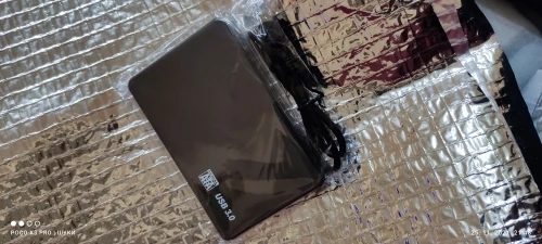 Работает. Подключил жесткий от старого ноута (2010 года примерно). Скорость записи видео файлов (для чего его собственно и брал) через USB2 в районе 25мб в секунду (ниже не опускалось, выше было) Доставка 3 недели