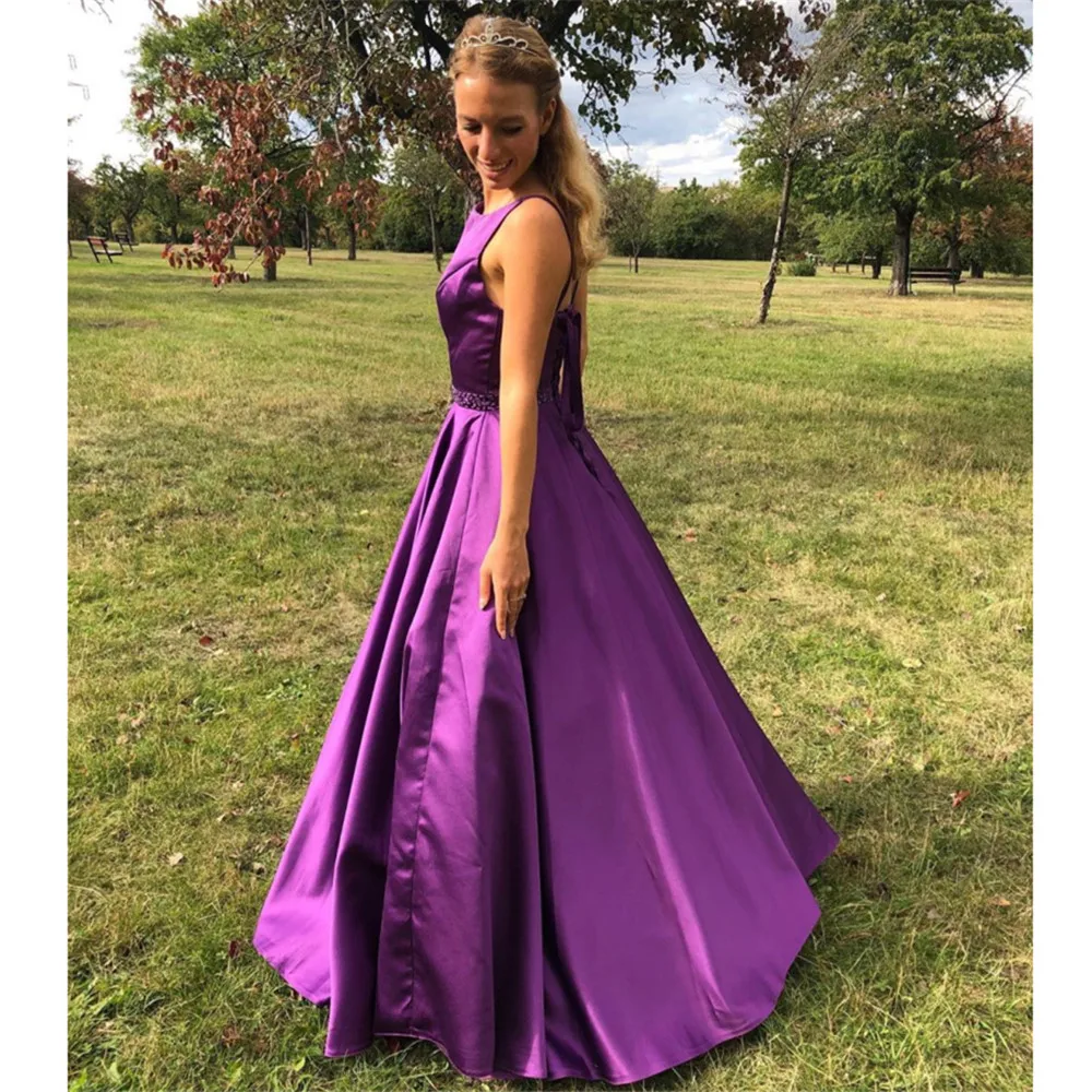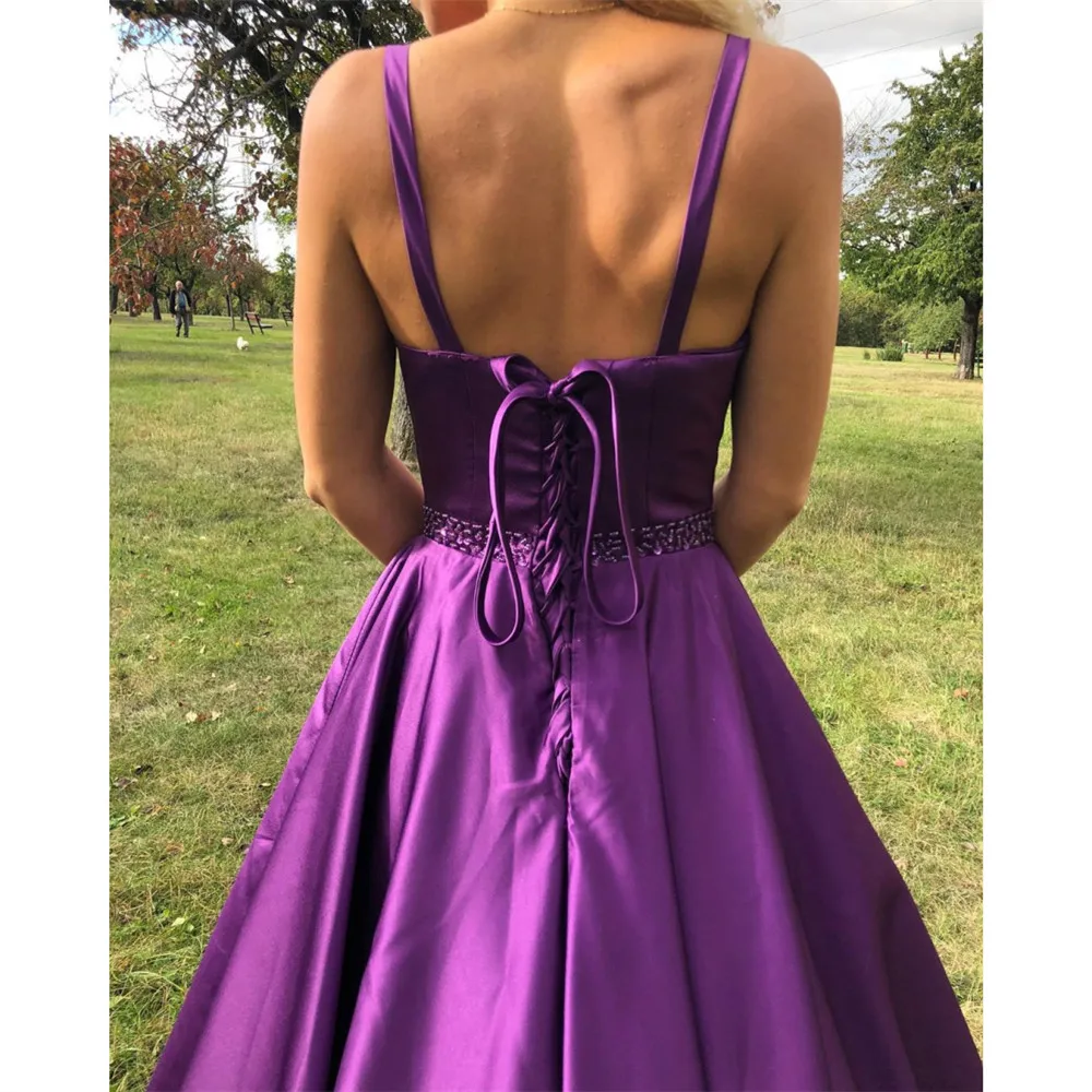 Платье женское атласное ТРАПЕЦИЕВИДНОЕ на шнуровке, фиолетовое