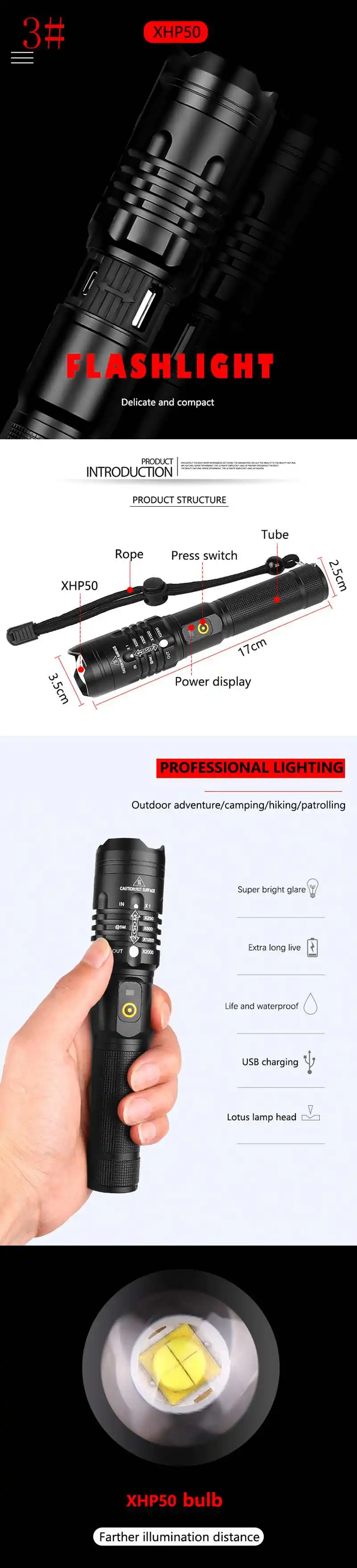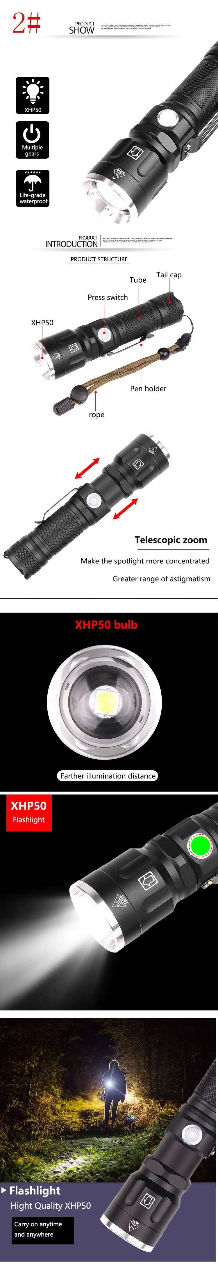 Телескопический Перезаряжаемый USB фонарик XANES P50 XHP50, 3-5 режимов, светодиодный фонарик с аккумулятором 18650, фонарик, фонарь, лампа для кемпинга, точесветильник ильник
