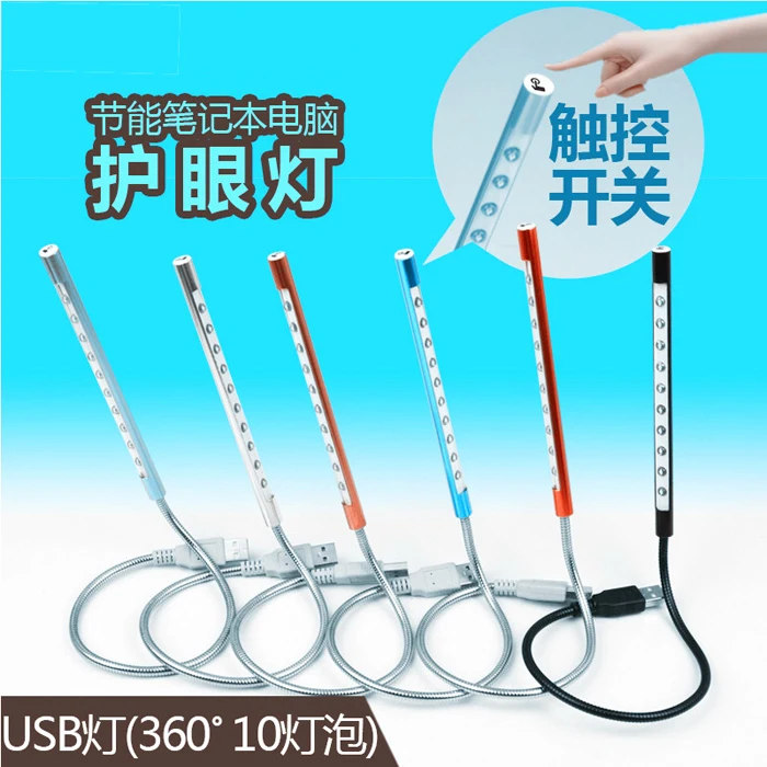 10 шт./лот сенсорный выключатель 10 LED портативная лампа с регулируемой яркостью для книг Кемпинг USB компьютер гибкий ночник клавиатура USB лампа для чтения Бесплатная и Прямая поставка