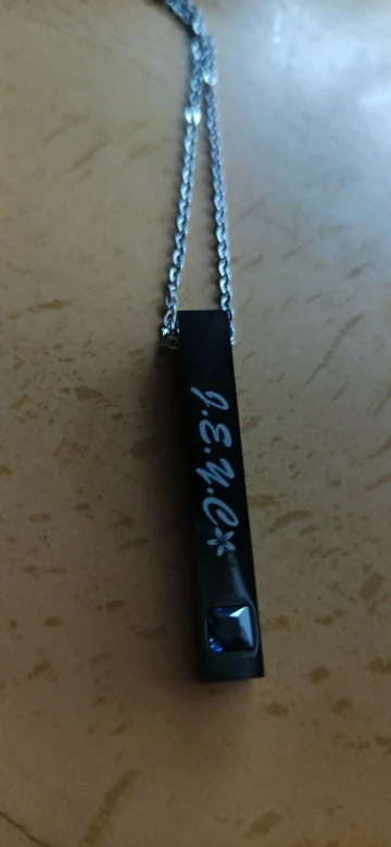 Отличное качество без царапин. Он очень гладкий и блестящий. Он очень маленький, который мне нравится, потому что я хотел тонкое ожерелье. Застежка отлично работает. Камни очень красивые. В комплект входит шрифт/символ, который я заказал. Черные ожерелья с камнями прилипают больше, чем розовые. Розовый Камень сидит на плоской поверхности, а черный-на подъеме. Моя единственная жалоба заключается в том, что я потребовал, чтобы гравюры были на обратной стороне, но они были нанесены спереди. Однако я в порядке с этим, потому что он выглядит очень красиво спереди.