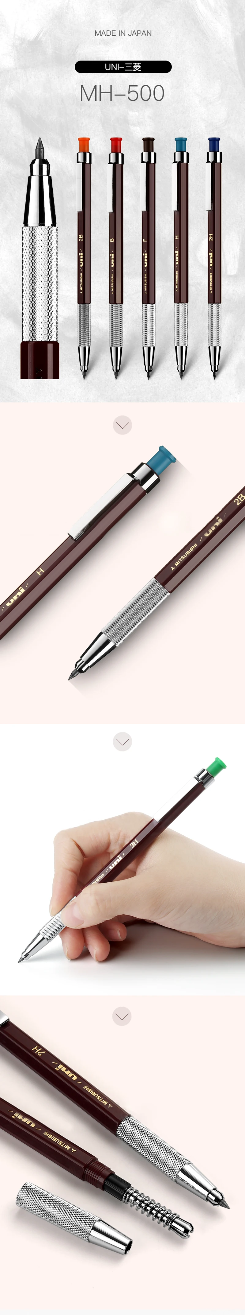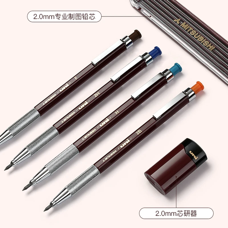 Механический карандаш Uni 2,0 дюйма, металлический держатель для ручки, шестигранный стержень, толстая головка, искусство, эскиз, рисование, комикс, дизайн, студенческие канцелярские принадлежности
