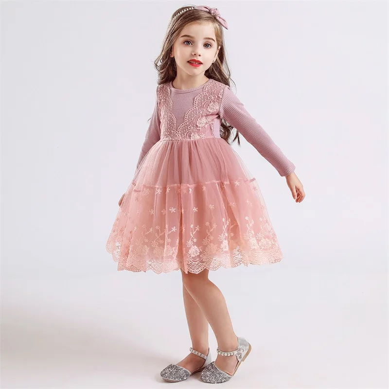 Осенне-зимнее платье для девочек детское платье с длинными рукавами для девочек кружевное праздничное платье принцессы школьная повседневная одежда для подростков детское платье
