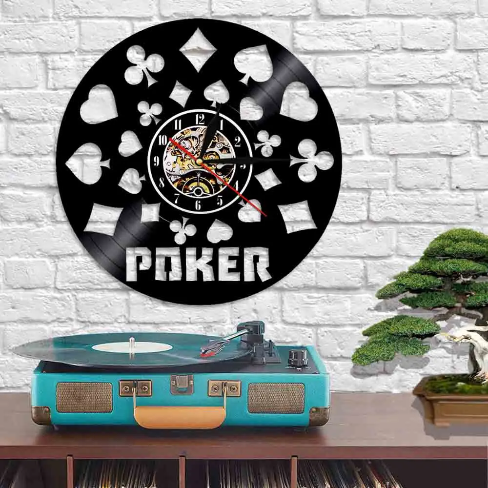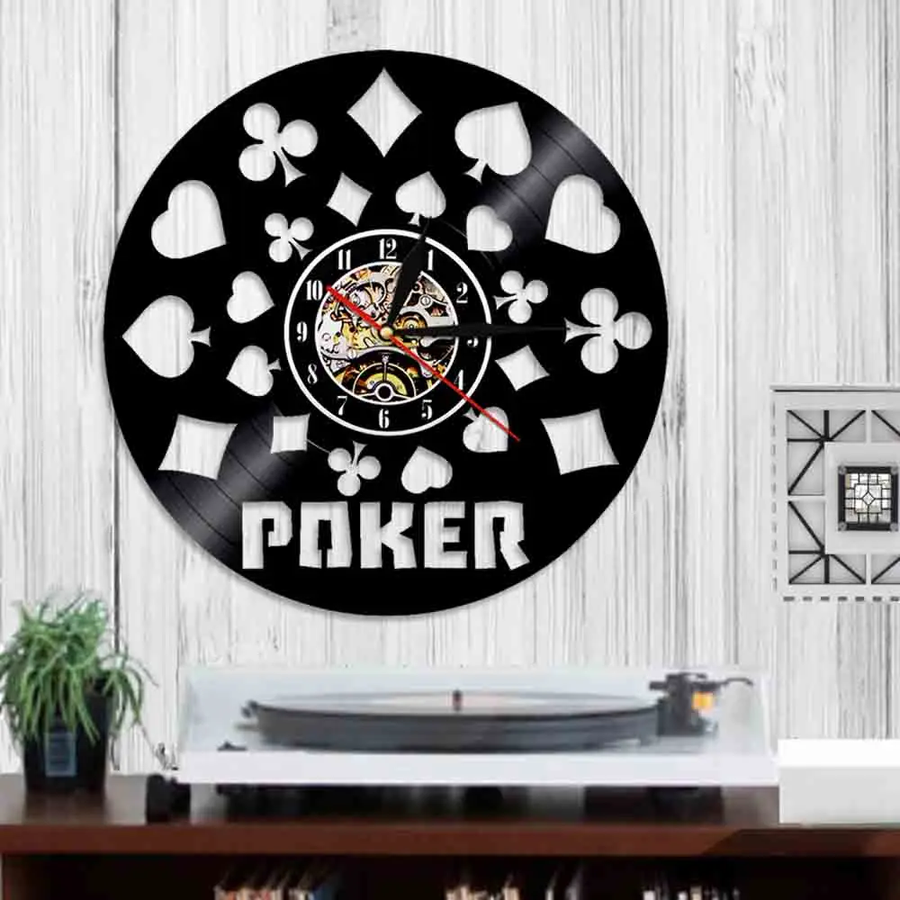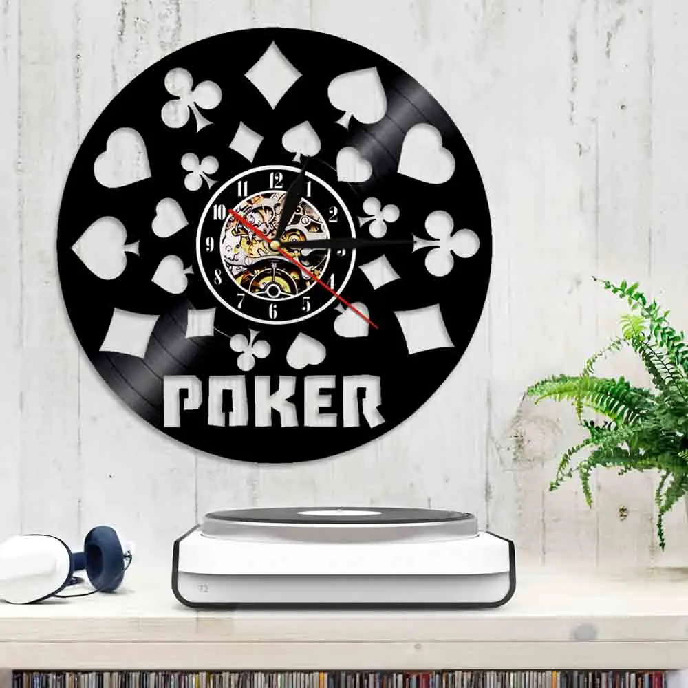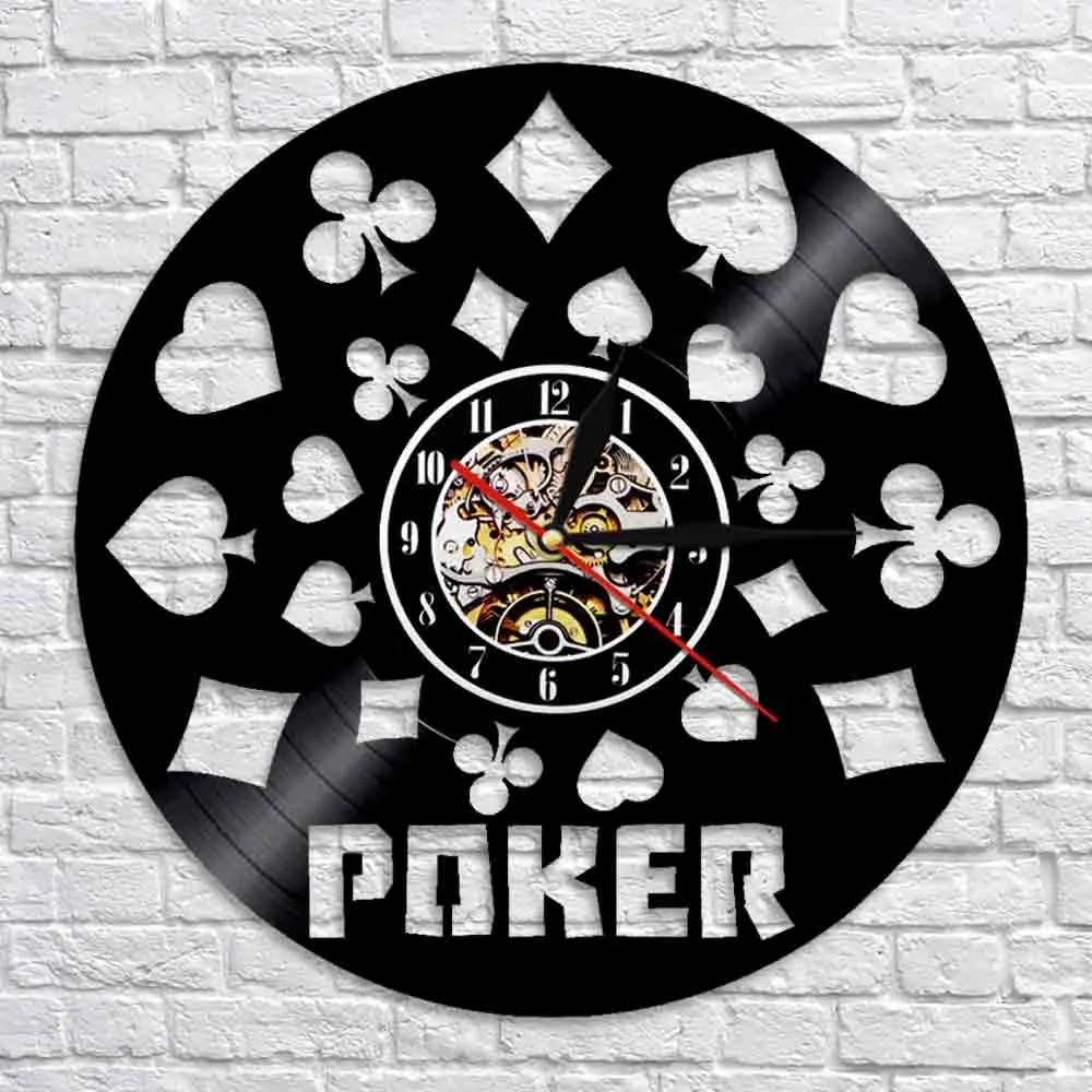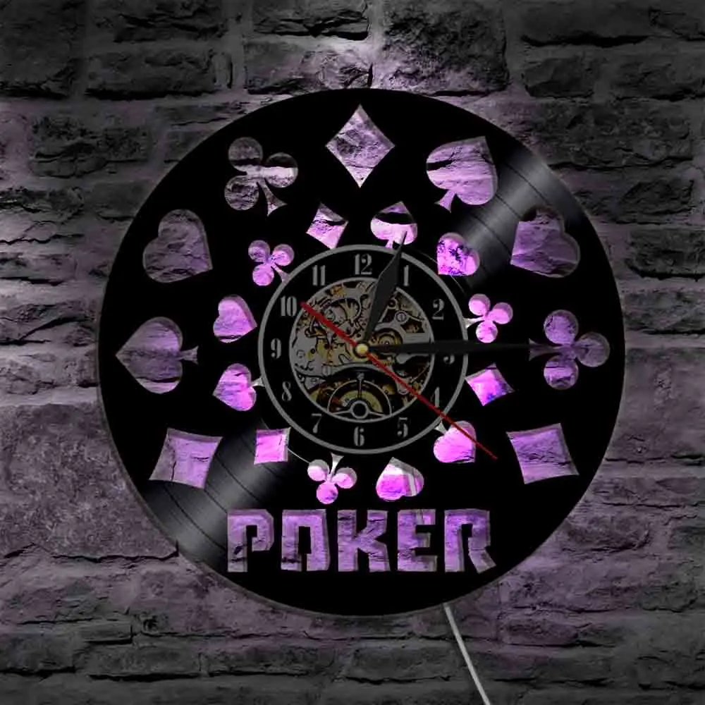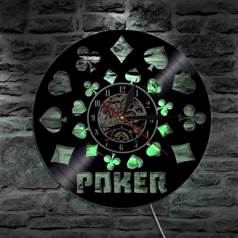 Poker King Rummy Play Cards виниловая запись черные Висячие 3D настенные часы светодиодный светильник с подсветкой современный дизайн подарок для любителей покера