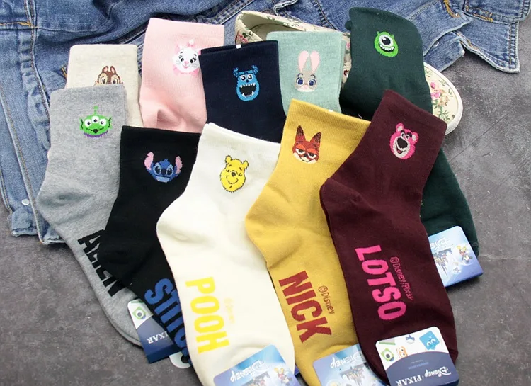 Симпатичные носки Disney с МиккиДональд ДакСтитч весенне-осенние женские хлопковые носки аниме уличные носки карамельных цветов женские носки