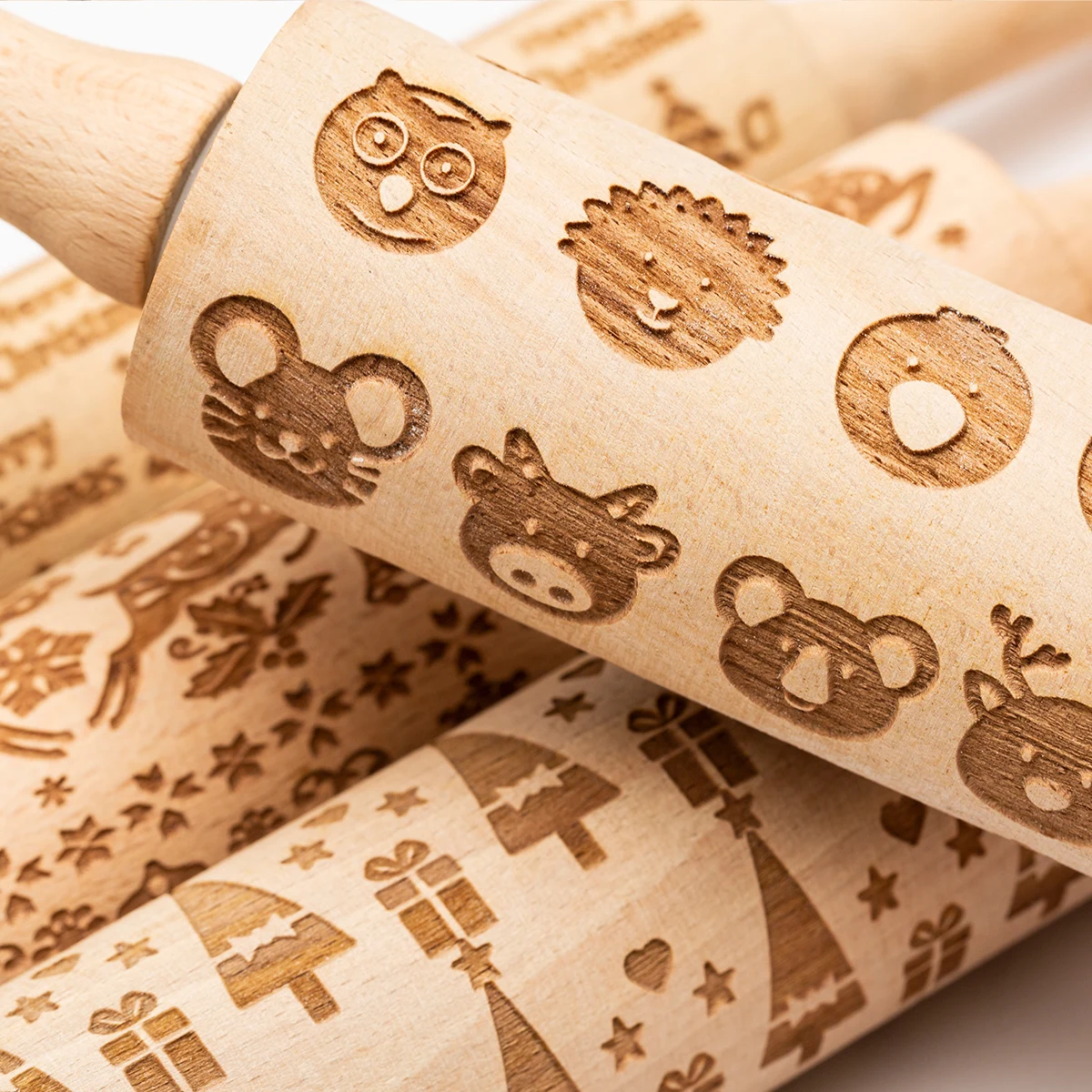 Рождественская Скалка 3D с 29 деревянными узорами, тисненые узорные булавки для печенья, инструменты для выпечки
