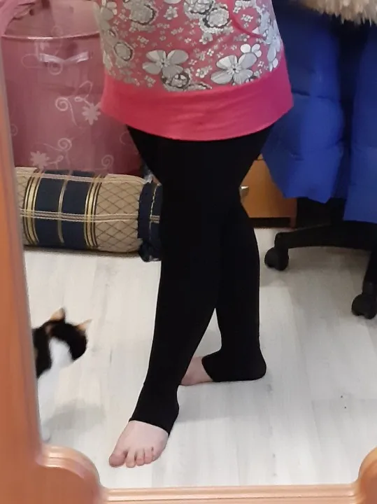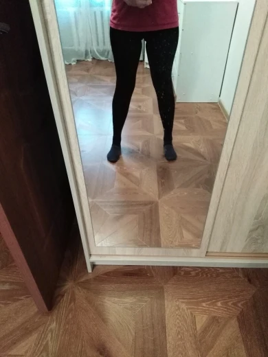Лосины пришли очень вовремя , за 20 дней до Москвы . Все как в описании. Немного не понятно , зачем внизу капронка ( приходится подгибать , может в дальнейшем обрежу , потому что она совсем неудобная , на последнем фото как раз я ее подогнула внутрь). Минус есть - материал красится ! Сильно . Вся толстовка покрасилась в чёрный изнутри , это не очень приятно . Сами лосины тёплые , мягкие , ходить в них удобно , но даже если -5 на улице - холодновато уже конечно в них .