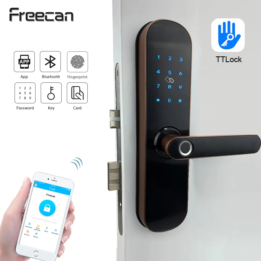 Умный электронный дверной замок FREECAN, со сканером отпечатка пальца, с Bluetooth, приложением, паролем, RFID-картой, механическим ключом