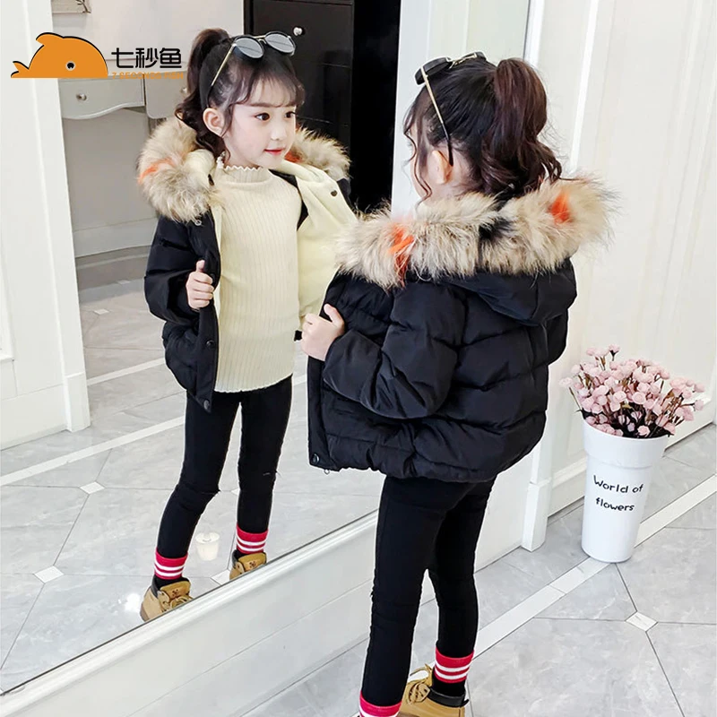 Парка с мехом для маленьких девочек, зимняя стеганая куртка для мальчиков 2, 3, 4, 5, 6, 7, 8 лет