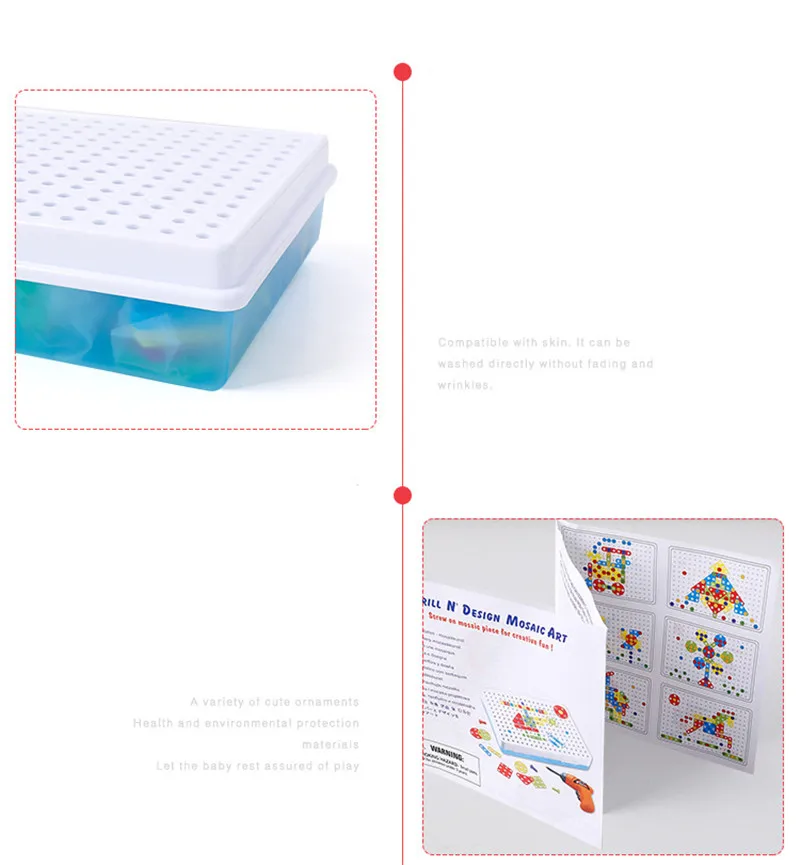 1. Безопасный, нетоксичный, безвкусный, это безопасный продукт для сопровождающих детей.2. Развитие способностей: развитие логического мышления, воображения, творческих навыков, математических навыков, ручного мозга, хватания, координации рук и глаз, развития интересов, интеллектуального развития, сенсорного и т. Д.3. Богатые аксессуары: есть 144 частей конфигурации, дать полную игру воображению вашего ребенка, чтобы сделать свой собственный шаблон.4. Вы можете выбрать из множества игр: в руководстве есть множество рекомендаций, и ребенок может свободно выбрать и выбрать. Всегда есть тот, который счастлив.5. Батарея установки: Продукт включает в себя два 1,5 v "AA" non-аккумуляторные батареи (не прилагаются). Крышка запечатана винтами, чтобы предотвратить ее падение.