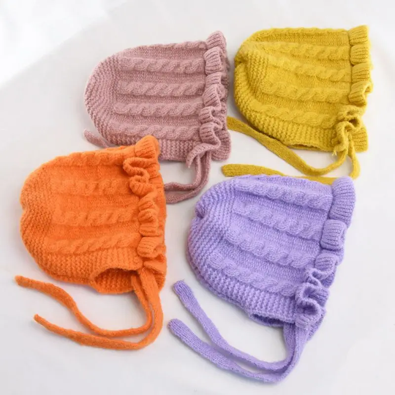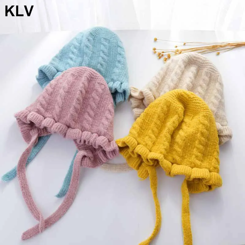 Шапка принцессы для маленьких девочек, вязаная зимняя шапка с кружевом для новорожденных, шапка для малышей, детские шапки, детская шапка для девочек, теплая шапка для новорожденных