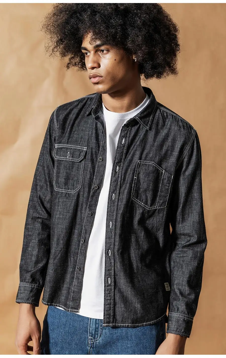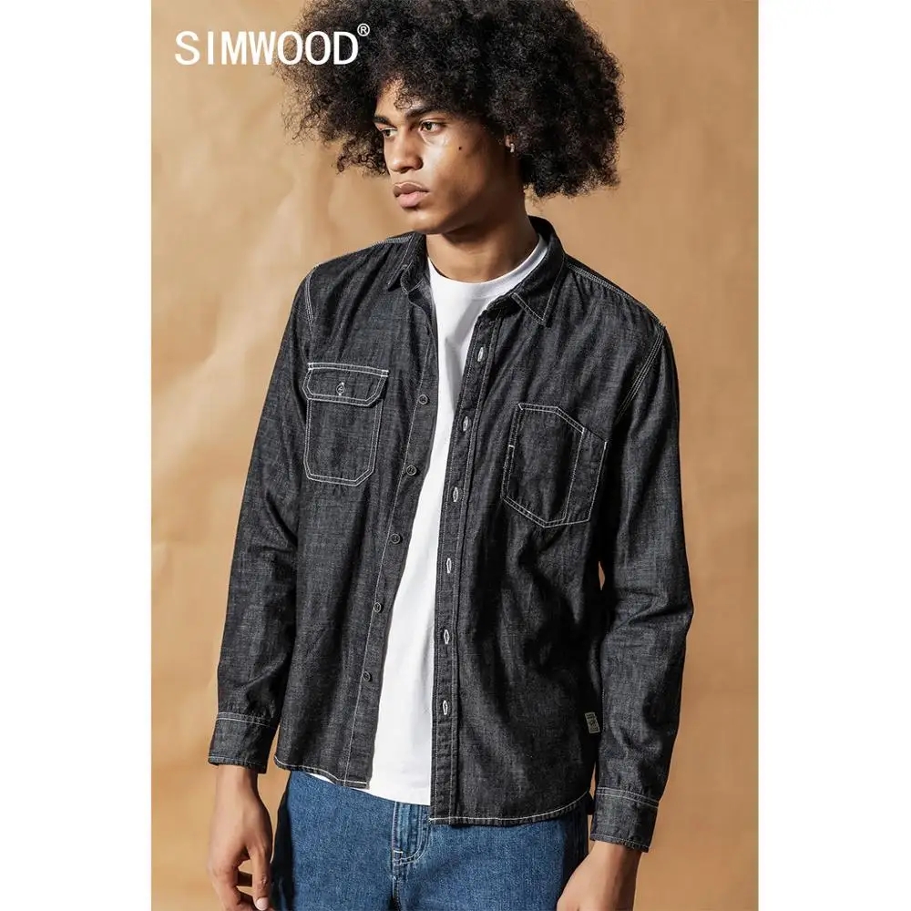 Мужская 2021 Simwood Jane, Весенняя джинсовая рубашка с асимметричным карманом и длинным рукавом, 190375