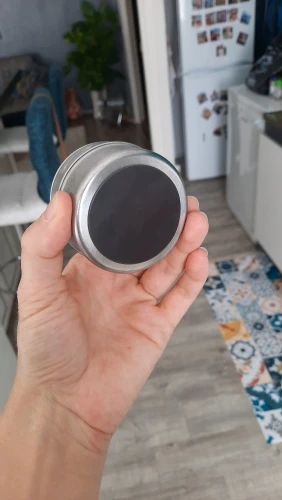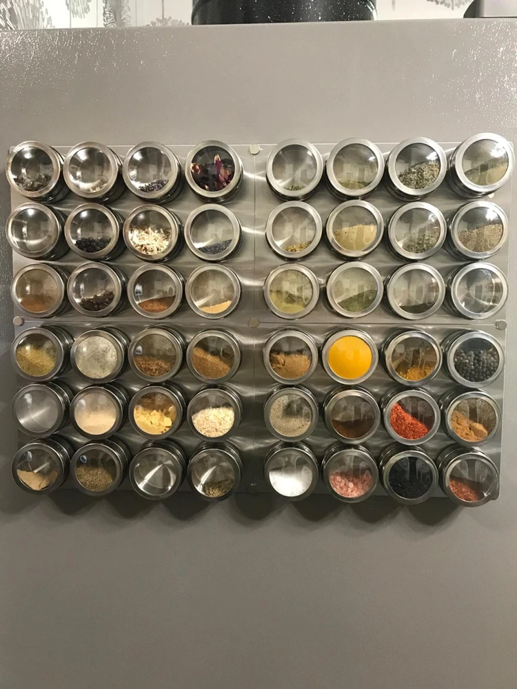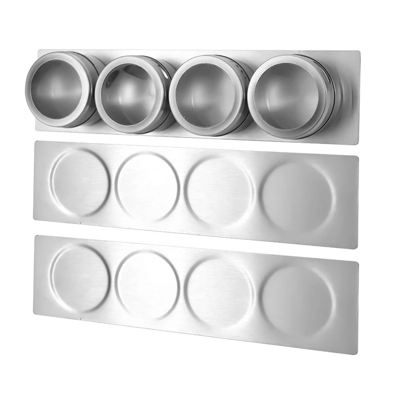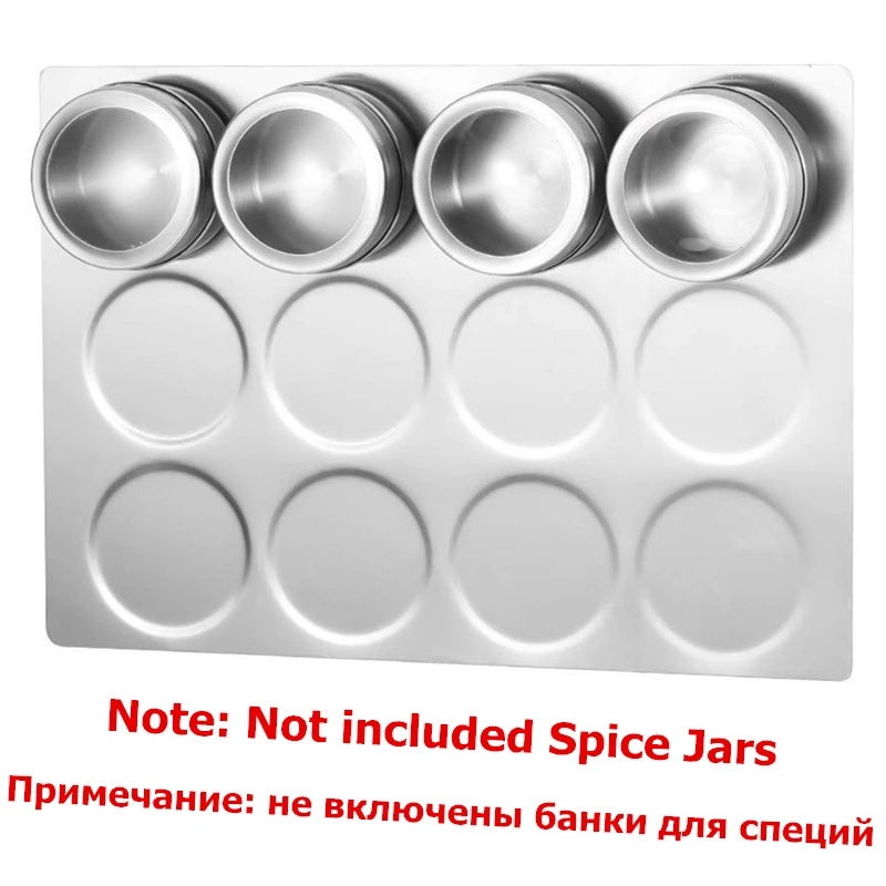 Описание не совсем соответствует, это не нержавейка иначе к пластине банки бы не цеплялись, а лист металла. Сама пластина не магнитная, крепится к стене на прилагаемые липучки. Упаковано было хорошо,все целое. Баночки держаться. В целом довольна.