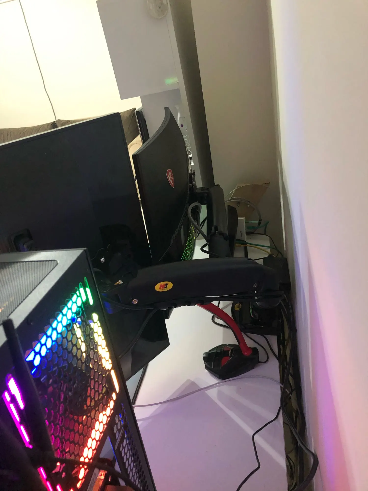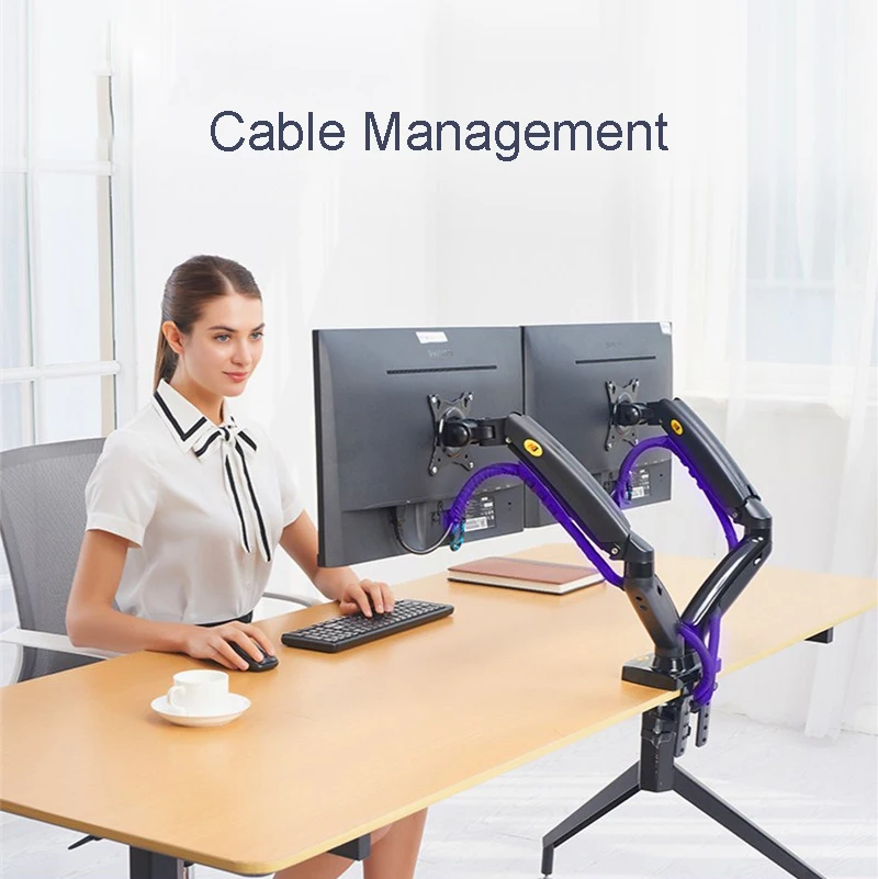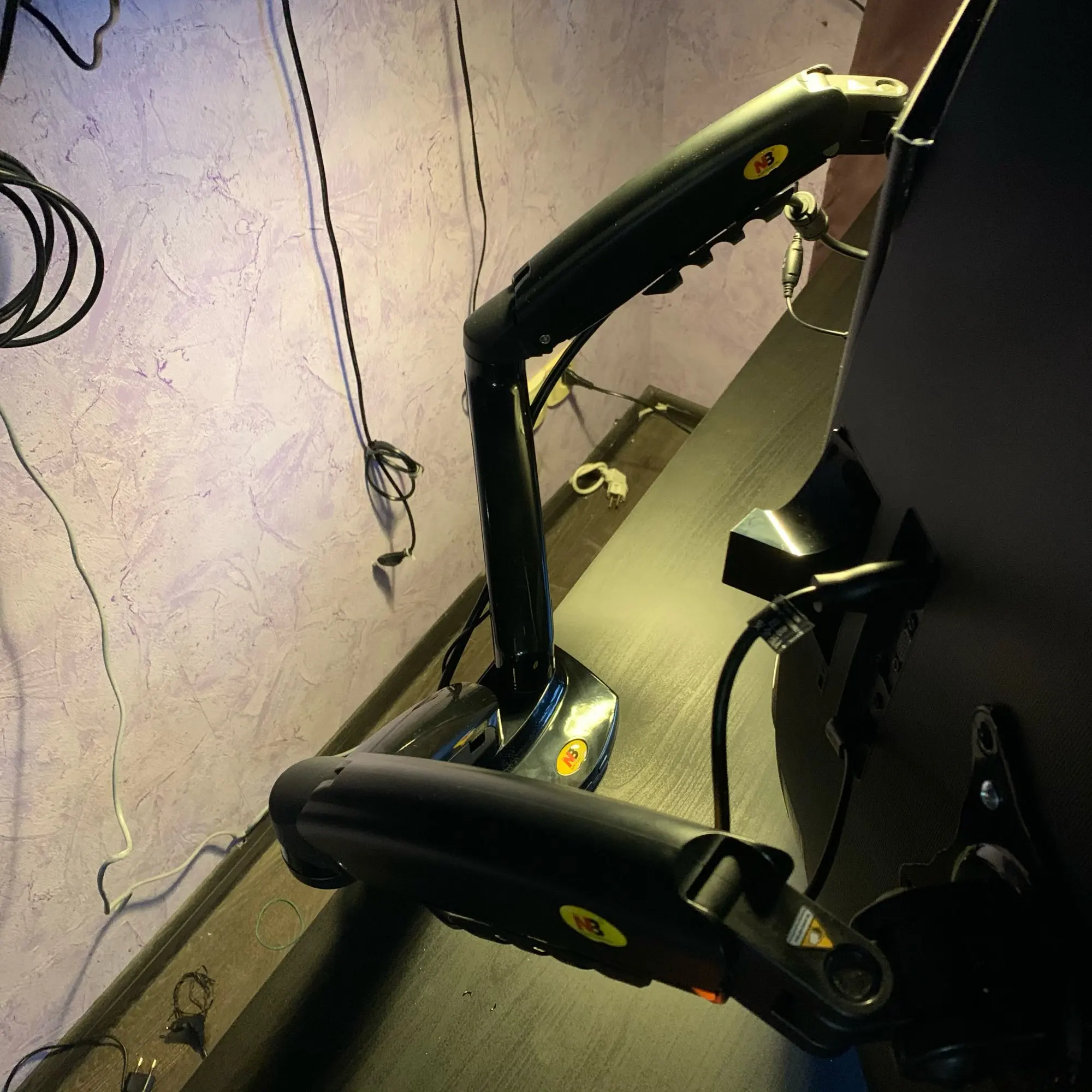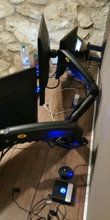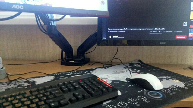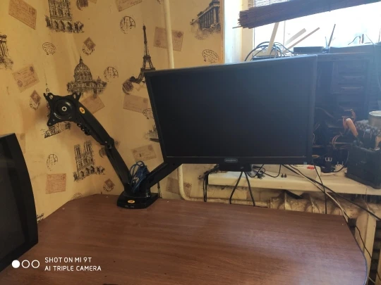 Суперский кронштейн для 2 мониторов. Очень удобно работать. Есть кабель каналы что смотрится эстетично и аккуратно (провода нигде не торчат). Только не работает 1 usb провод.