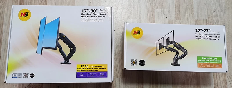 Новинка Настольный держатель NB F160 с газовой пружиной 17-27 дюймов, держатель для двух мониторов с 2 USB 3,0, фотозагрузка 2-9 кг на каждую руку