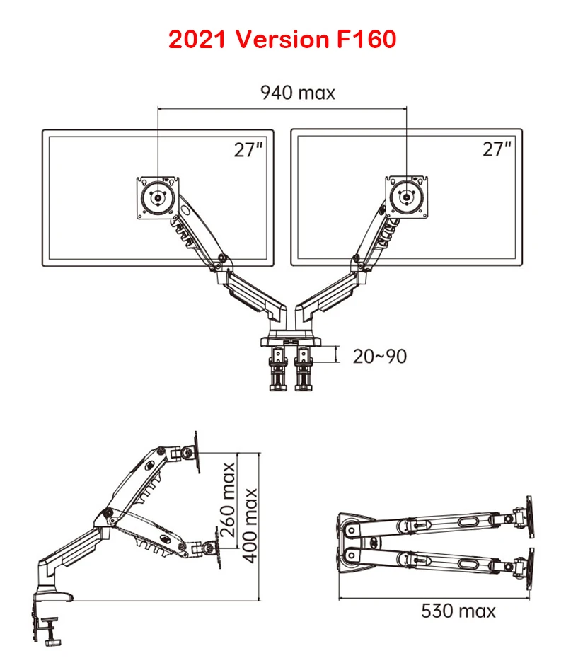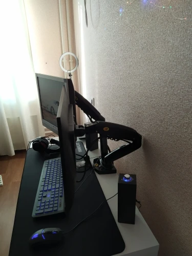 Приятно был удивлен качеством и добротностью изготовления. За час переоборудовал свое рабочее место. Никаких сложностей не возникло, винты, шестигранные ключи в комплекте. Есть возможность установки в отверстие столешницы и струбциной за кромку столешницы. Два монитора 22" удерживаются великолепно. потребовались простые регулировки газовых лифтов. Доволен результатом. Немного подумал и повернул мониторы вертикально - необычно, но понравилось, места занимают над столом значительно меньше.
