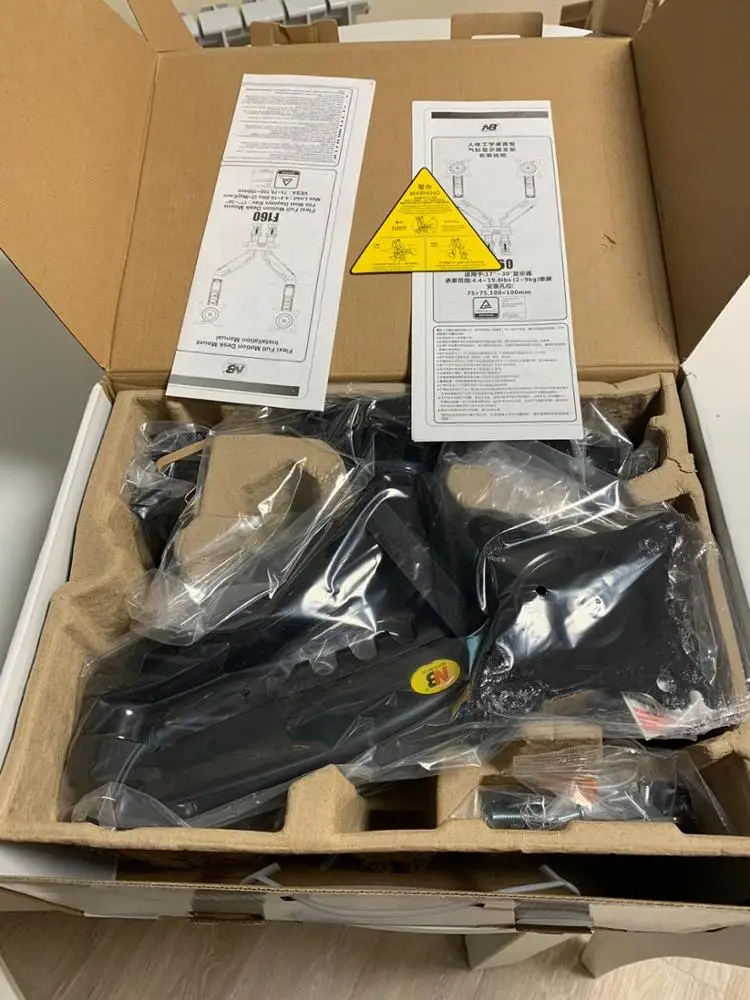 Очень качественный кронштейн, в коробочке всё упаковано, болтики для мониторов в комплекте, также в комплекте 2 варианта крепления, метал и пластик на уровне, плюсую с двух рук