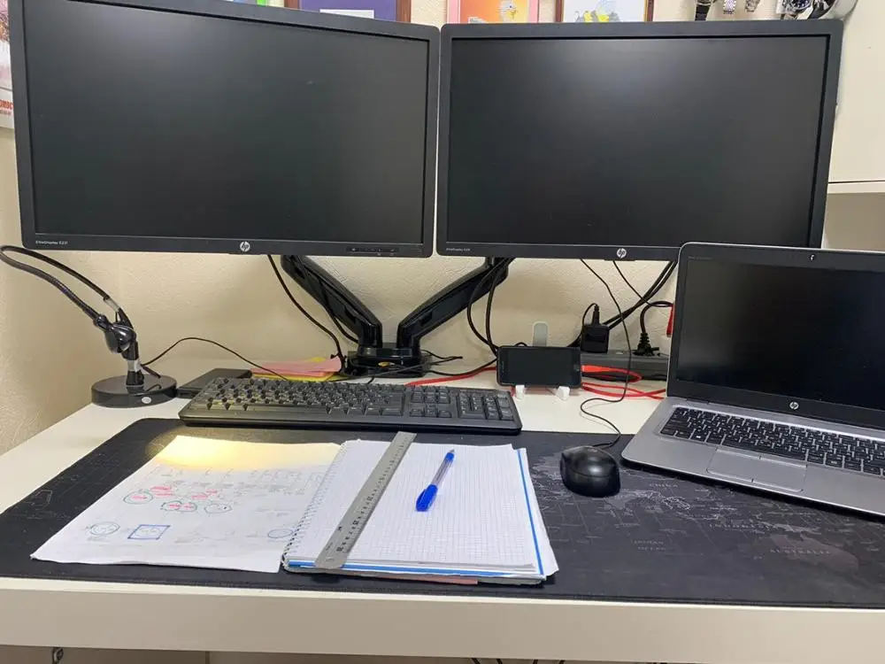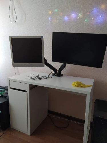 Все суперкруто. Очень быстро. 2x27' монитора висят отлично. Единственное нюанс в том, что пришлось подточить крепление под основную лыжу, т.к. не вмещалось. Но после все стало огонь! Оч. рекомендую. такая тьма места освободилась, просто жуть. К тому же основная причина покупки была высота мониторов, не смотря на то, что оба с довольно высокими подставками были регулируемыми, их не хватало. А тут все идеально.