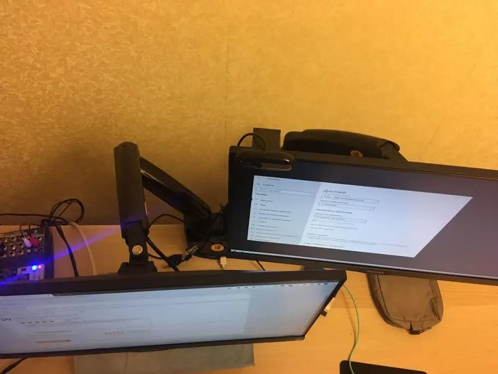 Немного тугое и не сильно гибкое в разные стороны, но хорошее крепление, поставил два монитора на 27 и на 24 дюйма, смотрится отлично :) доставка быстрая, до двери