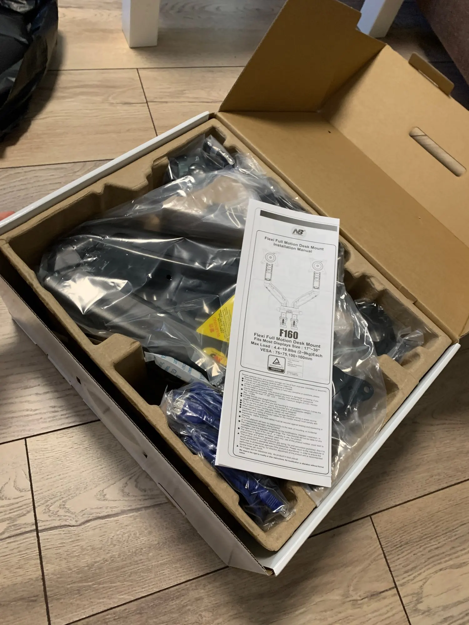 доставили товар очень быстро, ошибка в описании товара, на сайте максимальный размер 27 дюймов экрана на коробке и в инструкции написано 30 дюймов, собирается легко. устанавливается легко, сделан качественно.