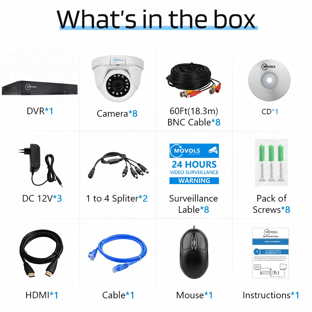 Movols 8CH 5MP CCTV камера система H.265 DVR комплект 8 шт наружная камера безопасности P2P IR-CUT домашняя купольная система видеонаблюдения