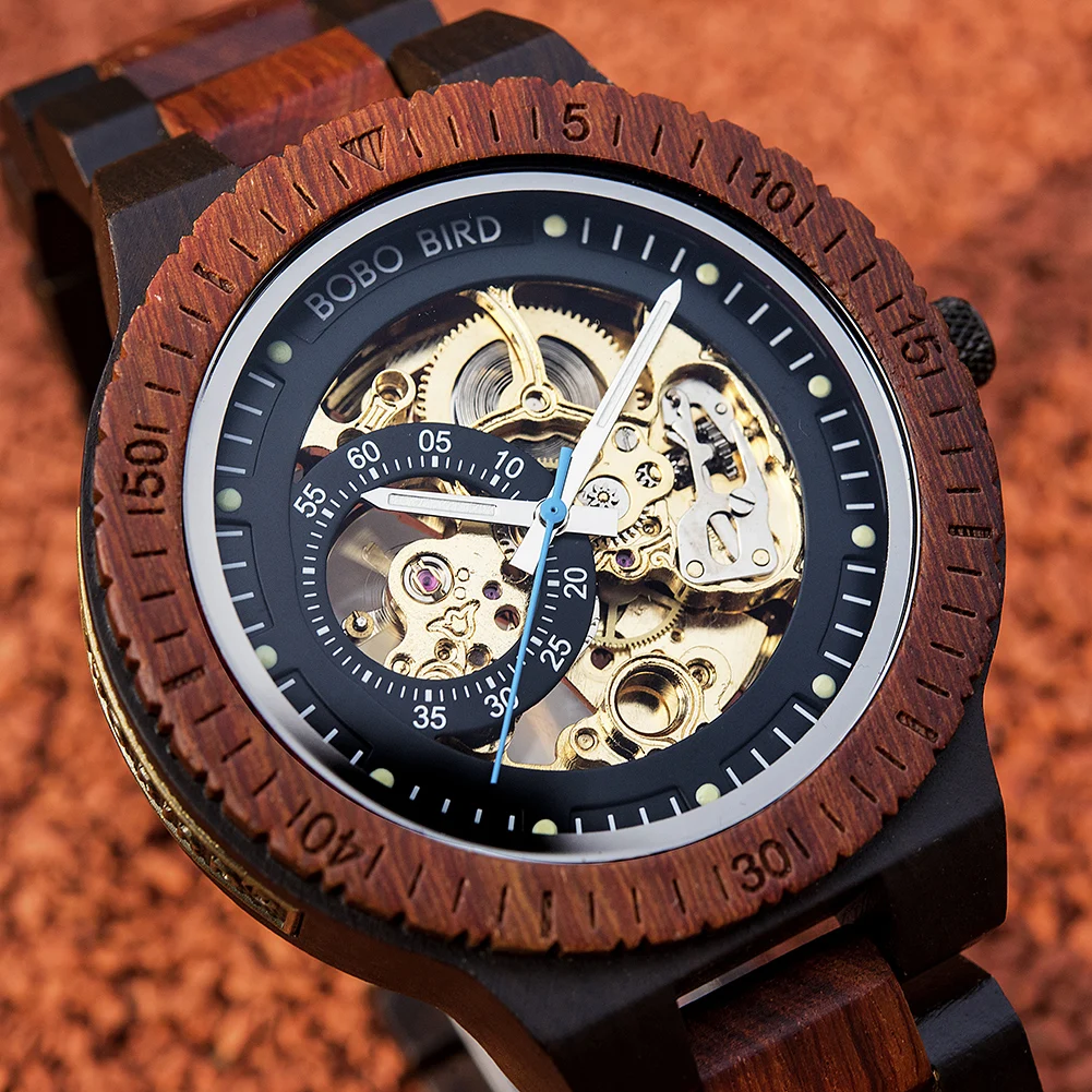 Механические часы BOBO BIRD, мужские деревянные Автоматические нару...