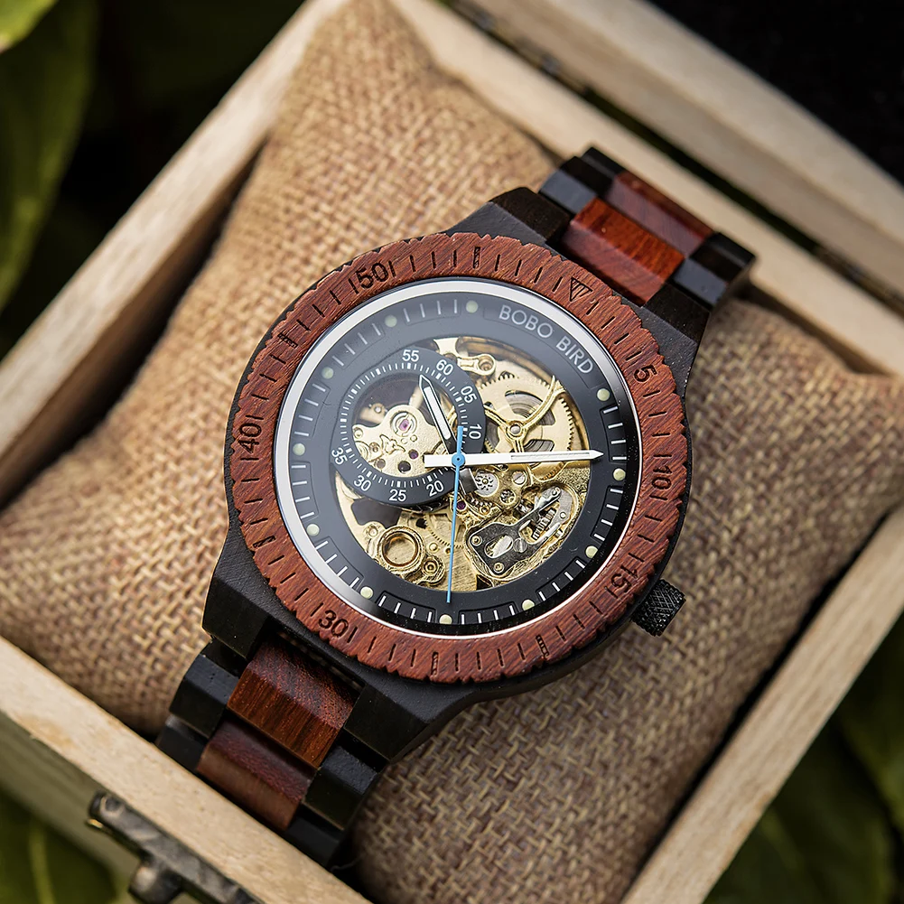 Часы мужские, механические, с автоподзаводом, в деревянном корпусе
